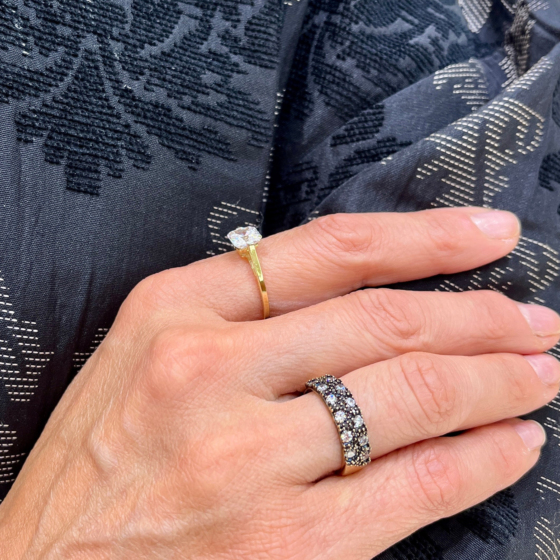 Złoty pierścionek ring z czarnymi cyrkoniami