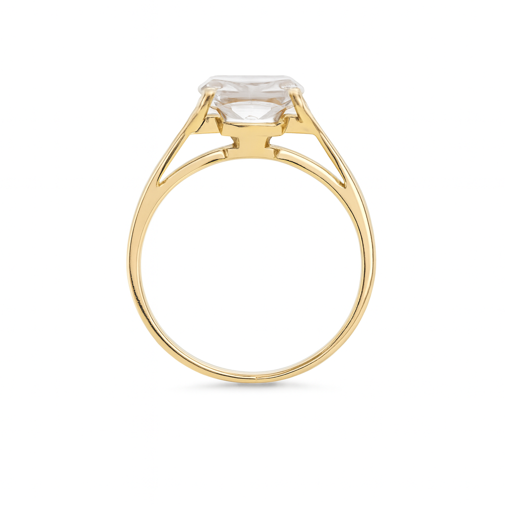 Złoty pierścionek z dużą cyrkonią w czterech łapkach