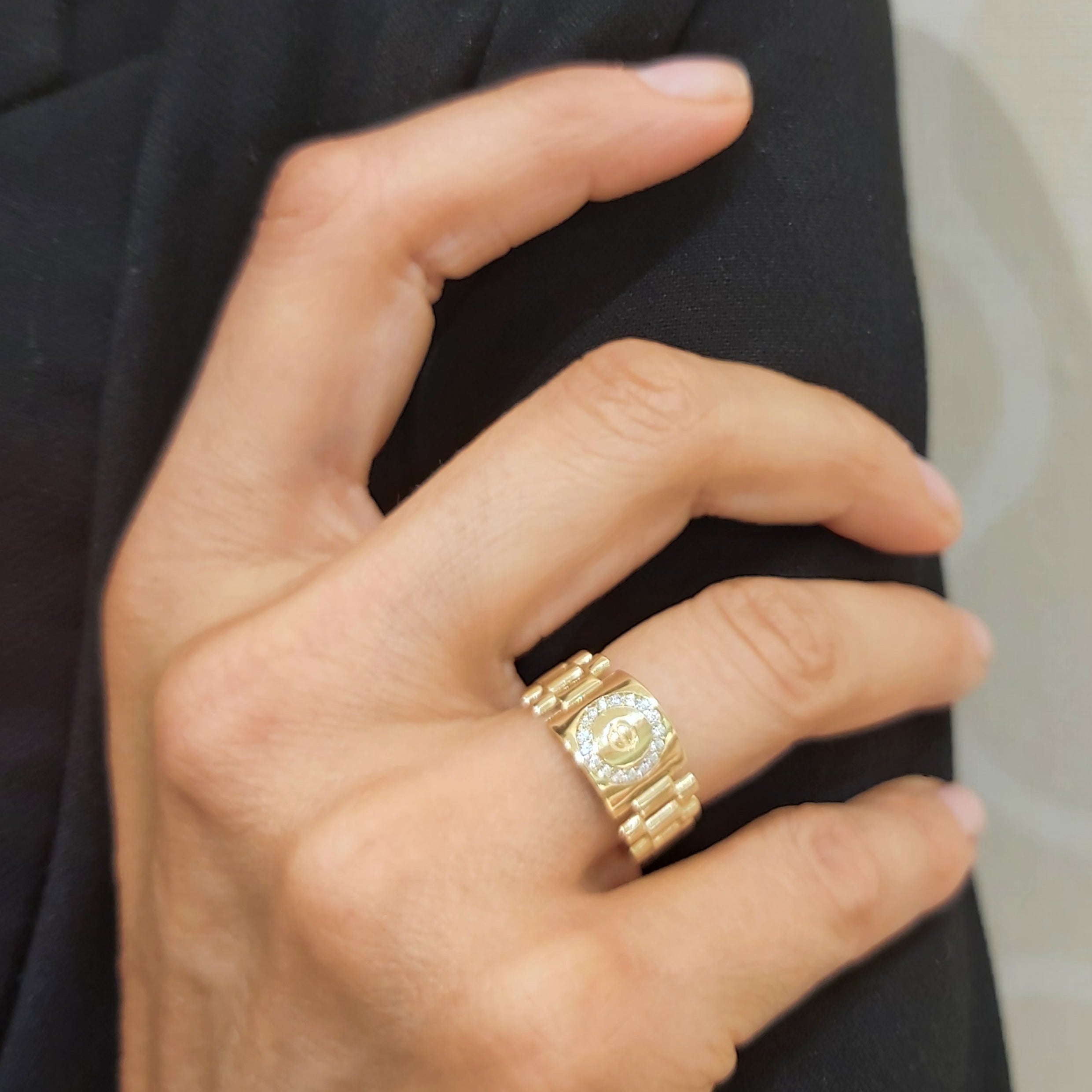 Pierścionek szeroki ażurowy z dwukolorowego złota