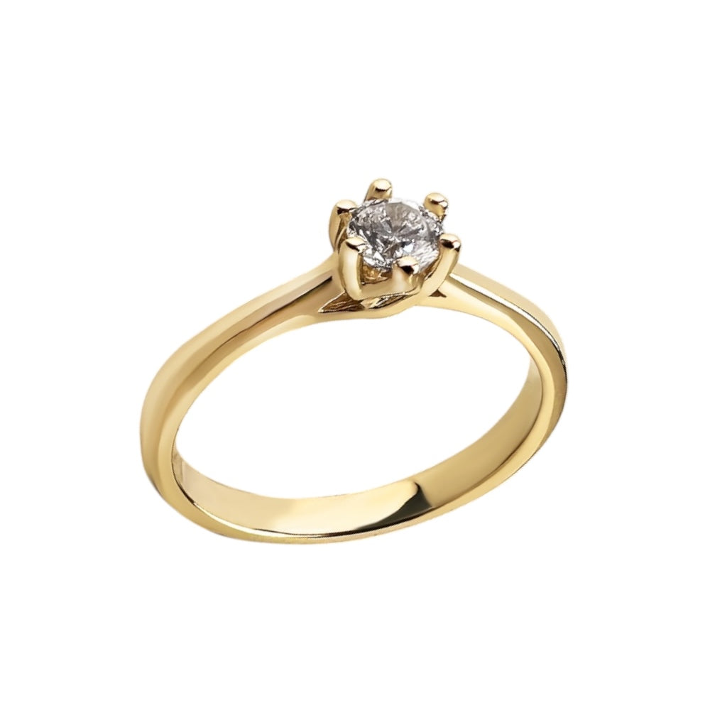 Złoty pierścionek zaręczynowy z cyrkonią w sześciu łapkach