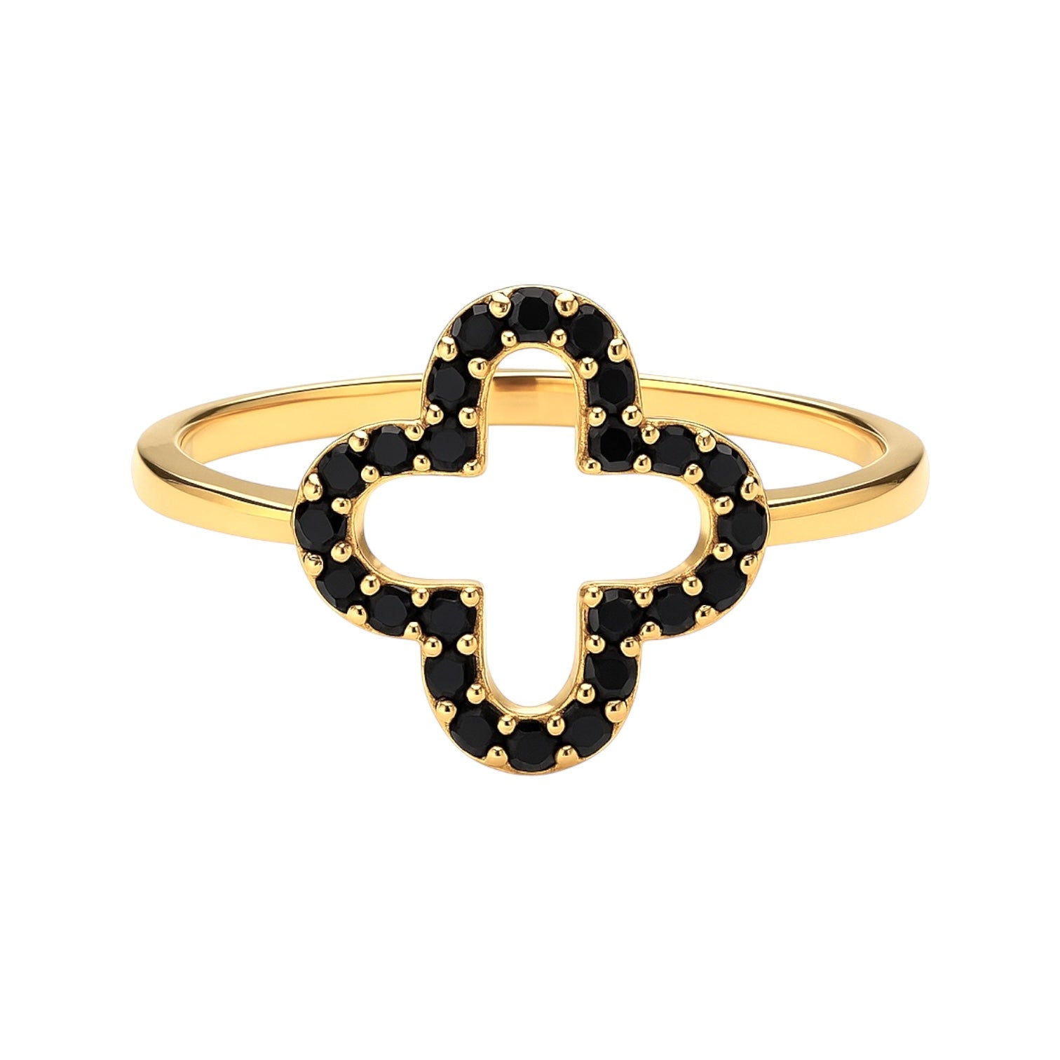 Złoty pierścionek z czarnymi cyrkoniami koniczyna