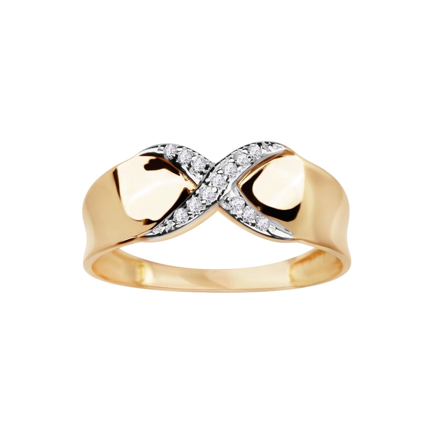 Złoty pierścionek szeroki z cyrkoniami droga grecka
