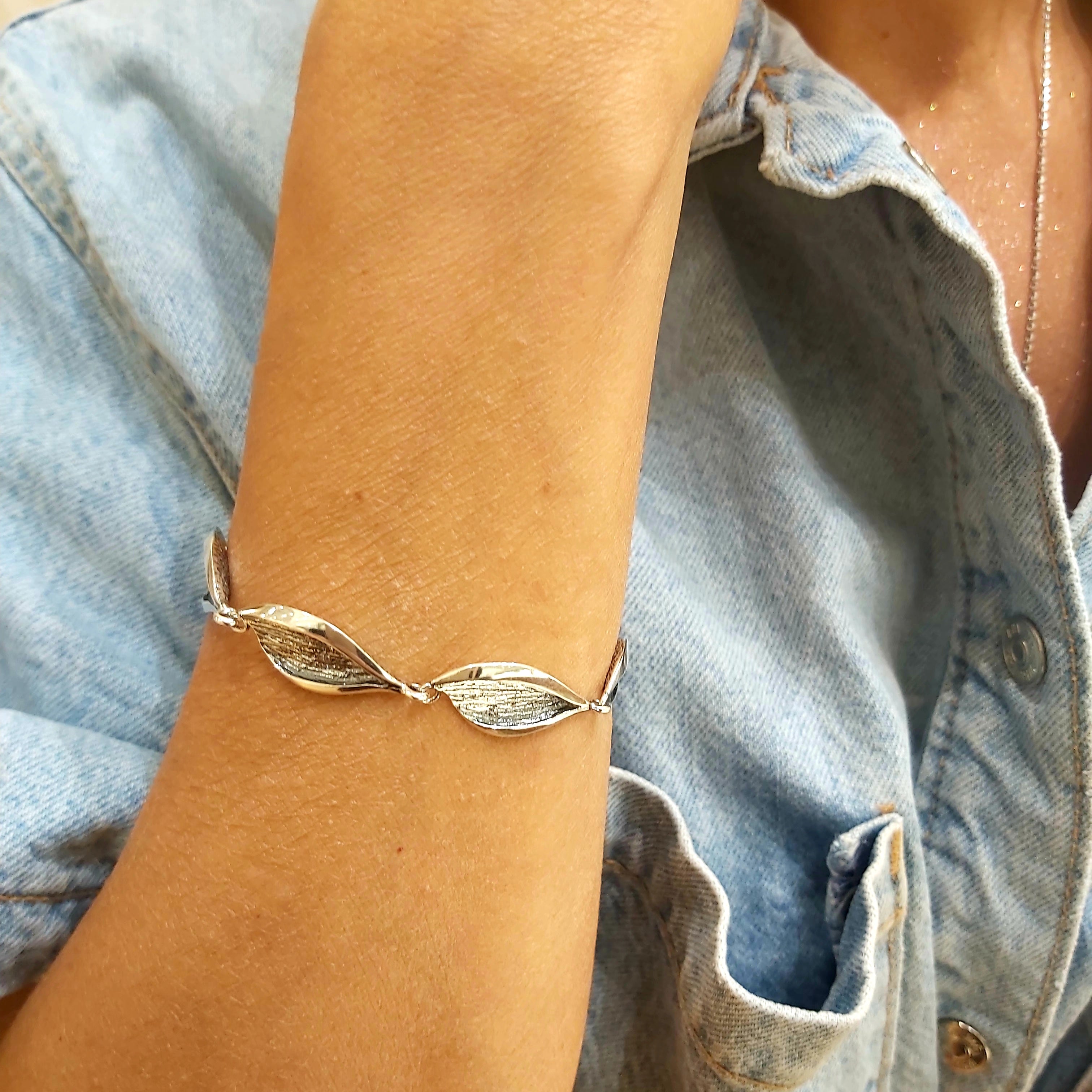 Bransoletka srebrna oksydowany liść