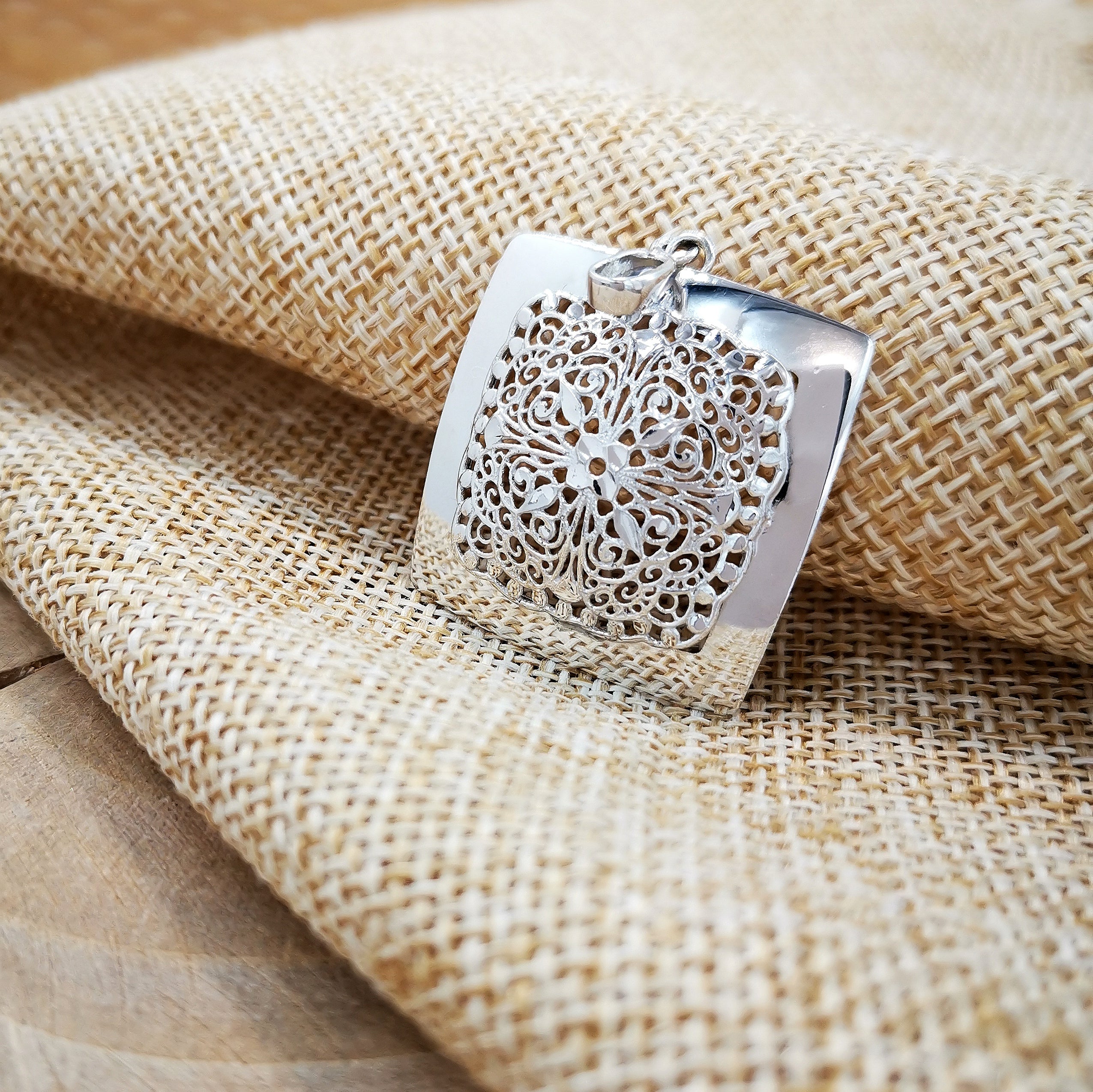 Złota zawieszka prostokątna z motywem greckim i cyrkoniami
