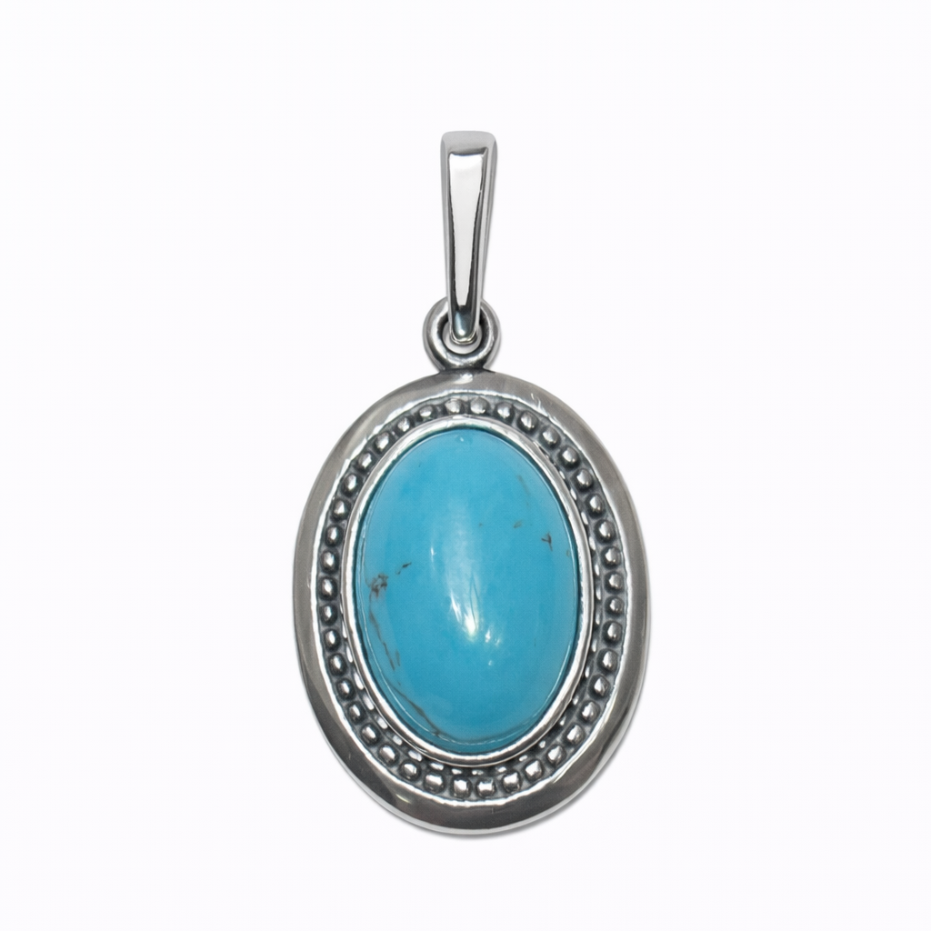 Zawieszka srebrna duża z turkusem w grawerowanej oprawie
