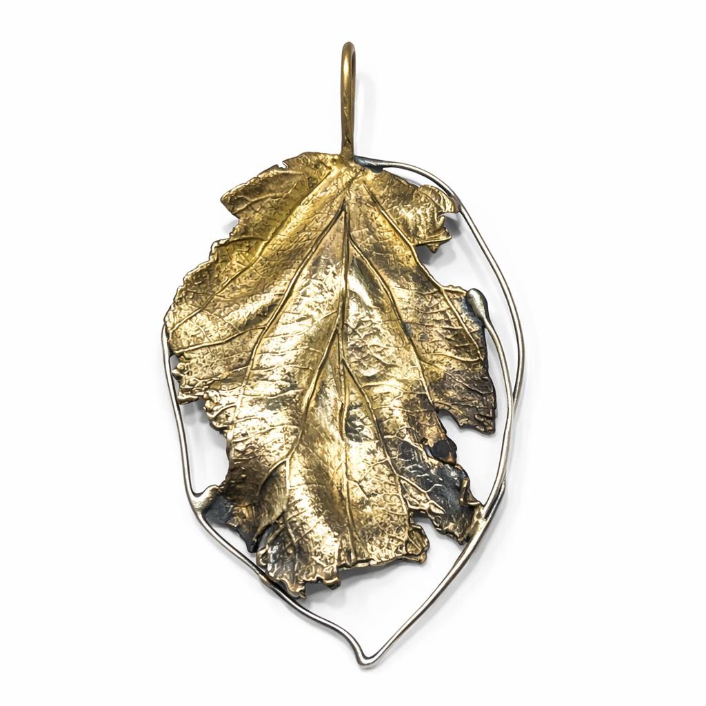 Zawieszka artystyczna liść złoty z mosiądzu Dorian Grabowski