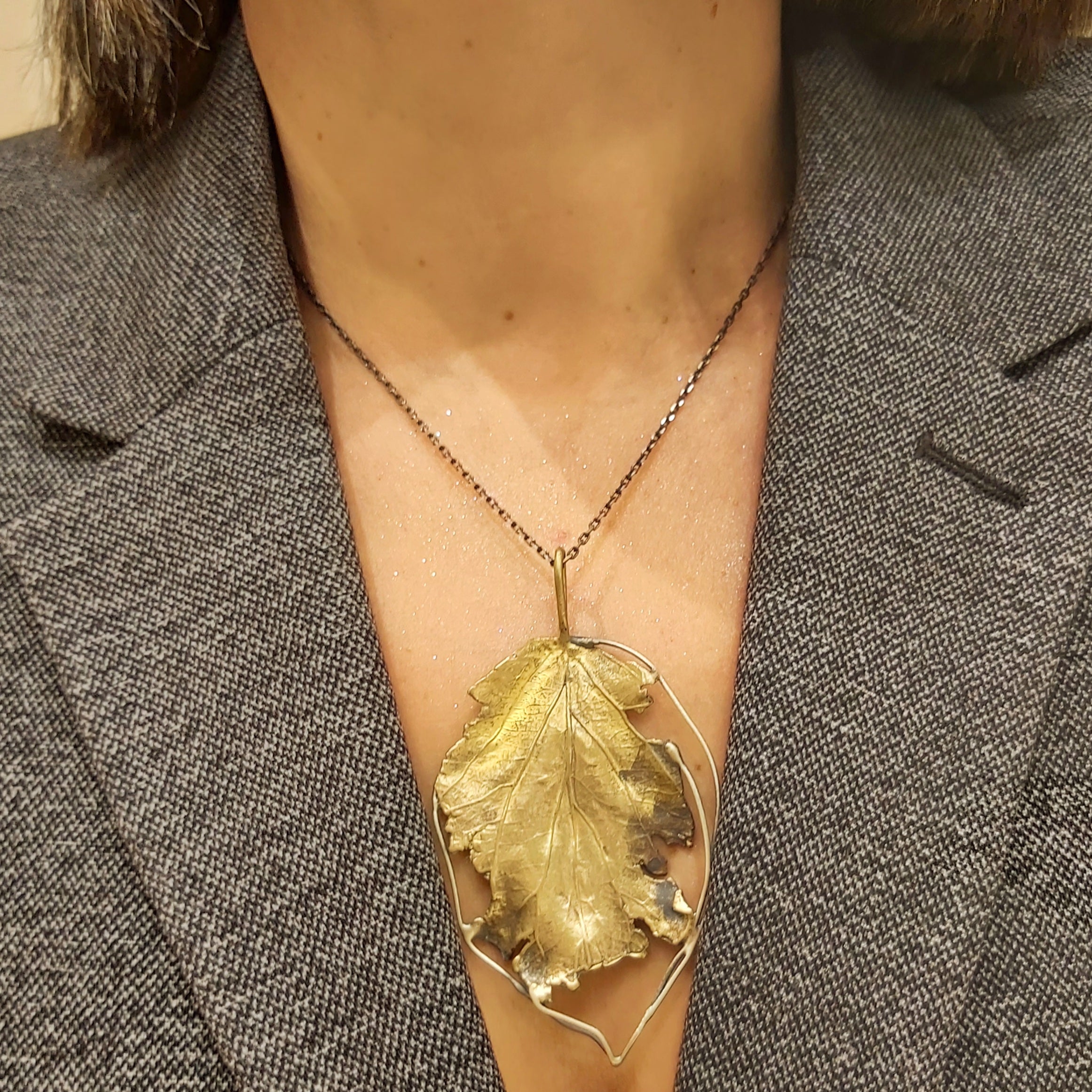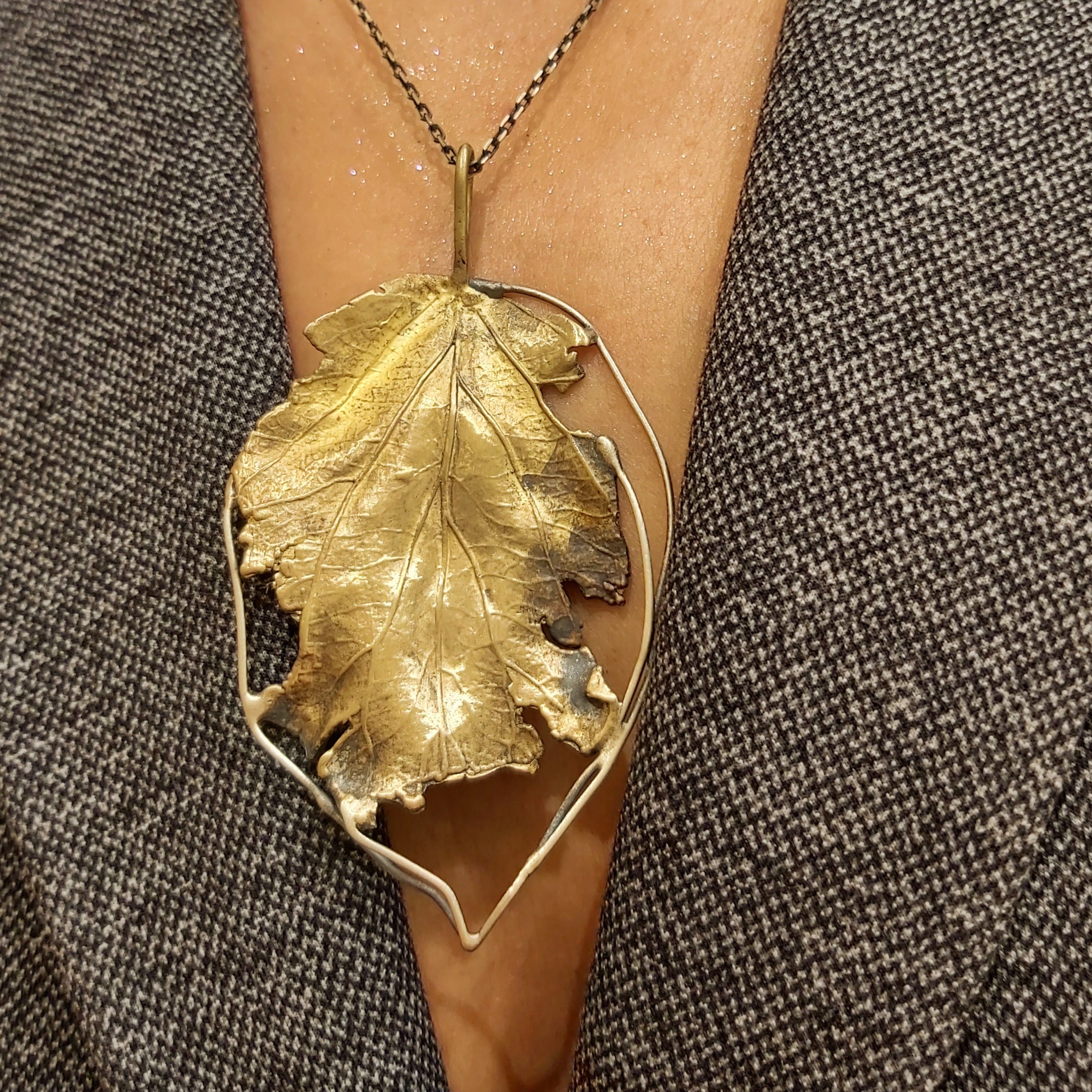 Zawieszka artystyczna złoty liść z mosiądzu Dorian Grabowski