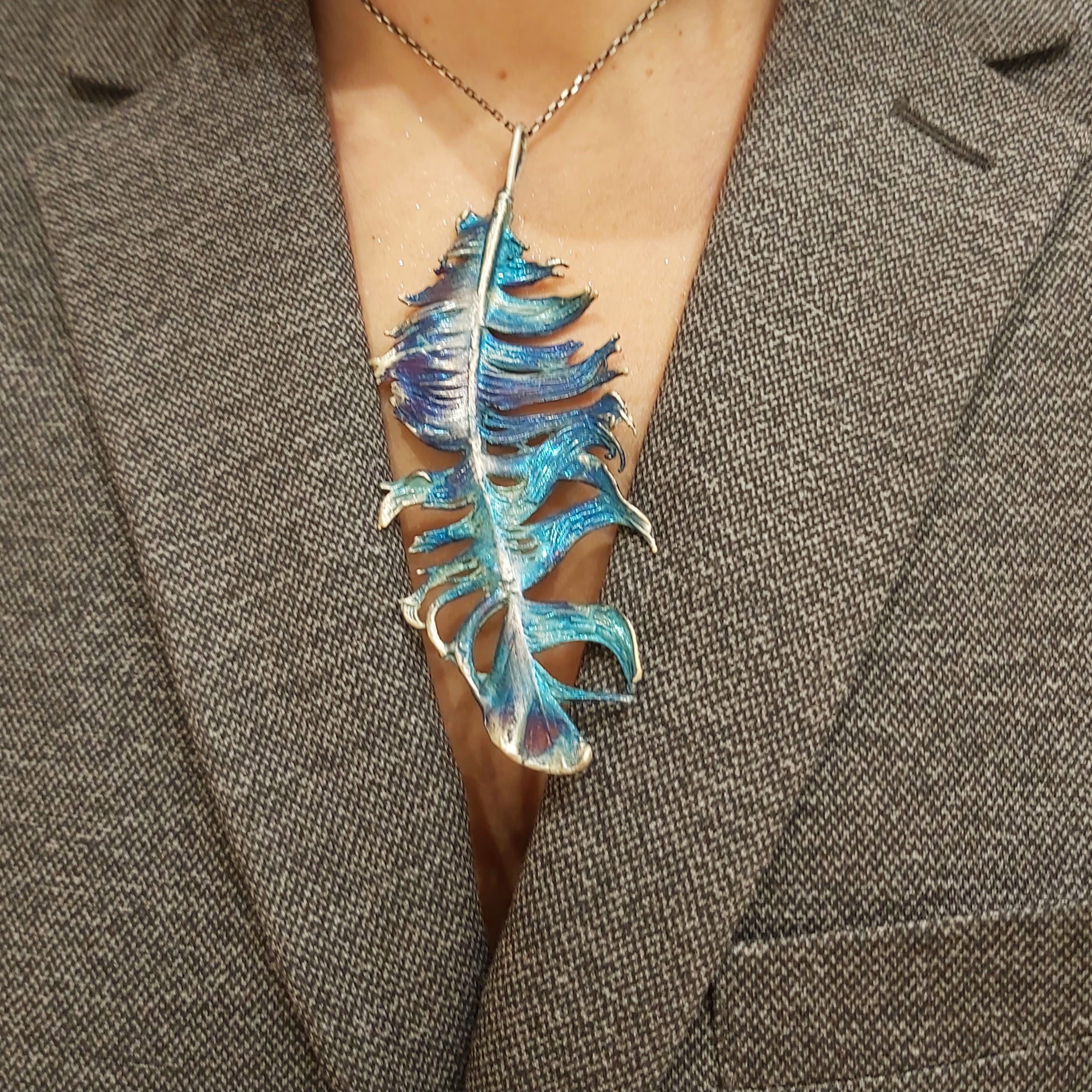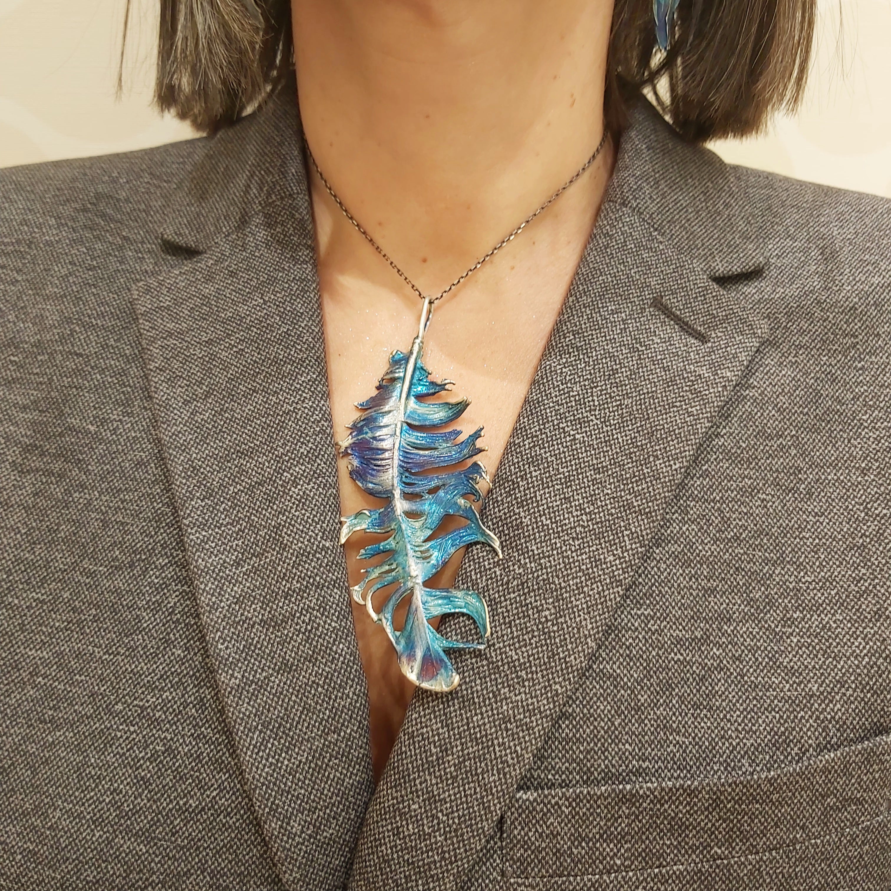 Zawieszka artystyczna niebieskie pióro Dorian Grabowski