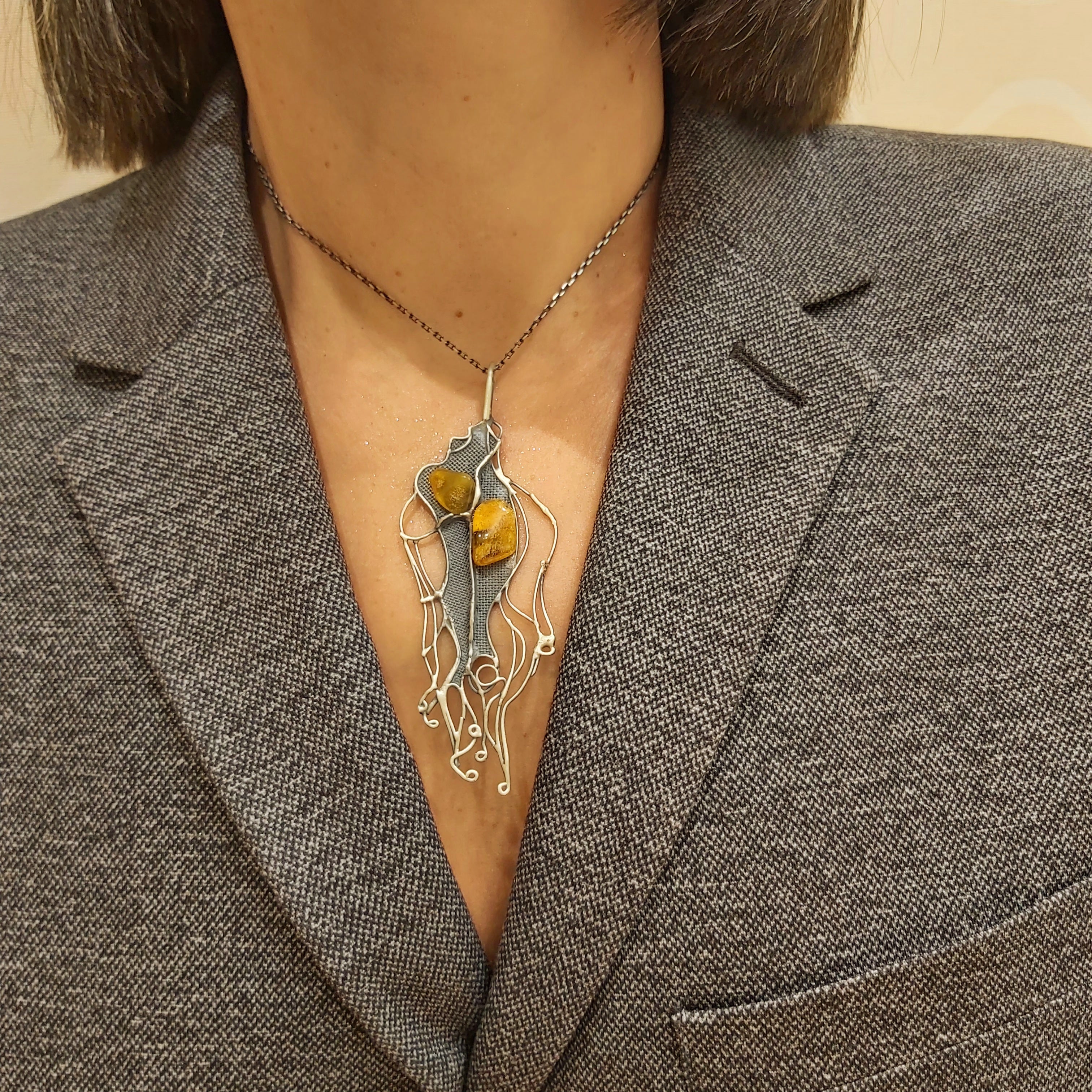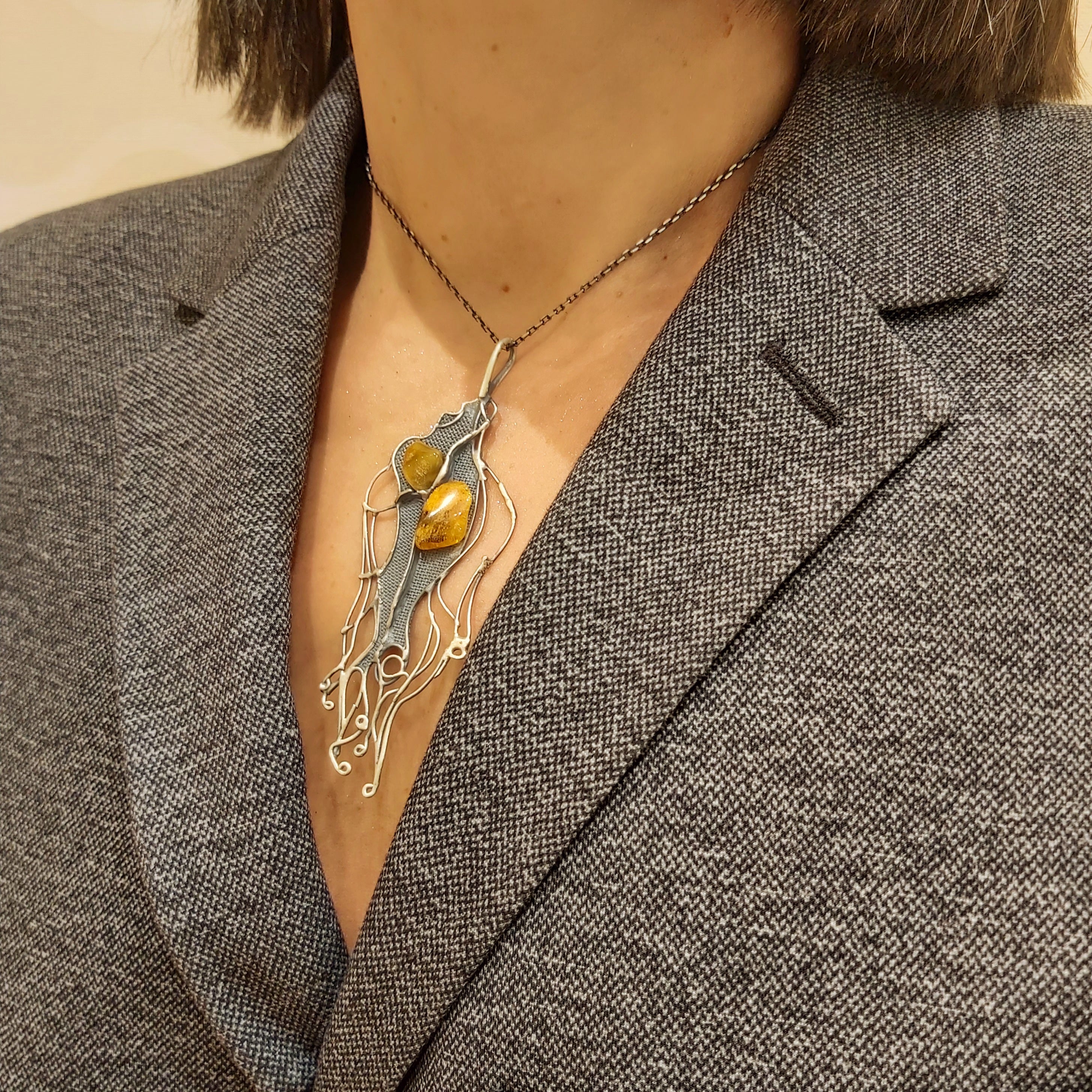 Zawieszka artystyczna z bursztynem Dorian Grabowski