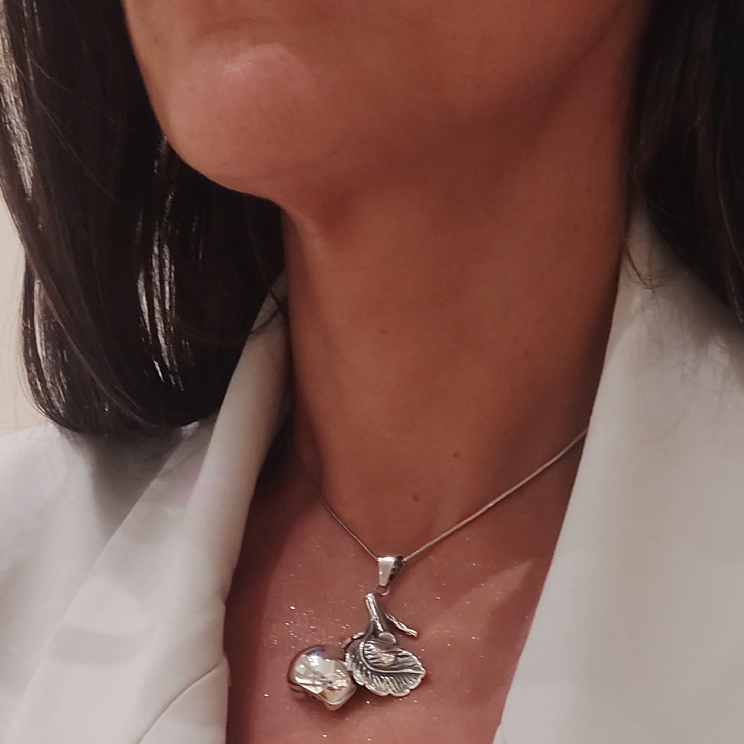 Zawieszka srebrna z żółtym bursztynem bursztynem w oprawie z liści