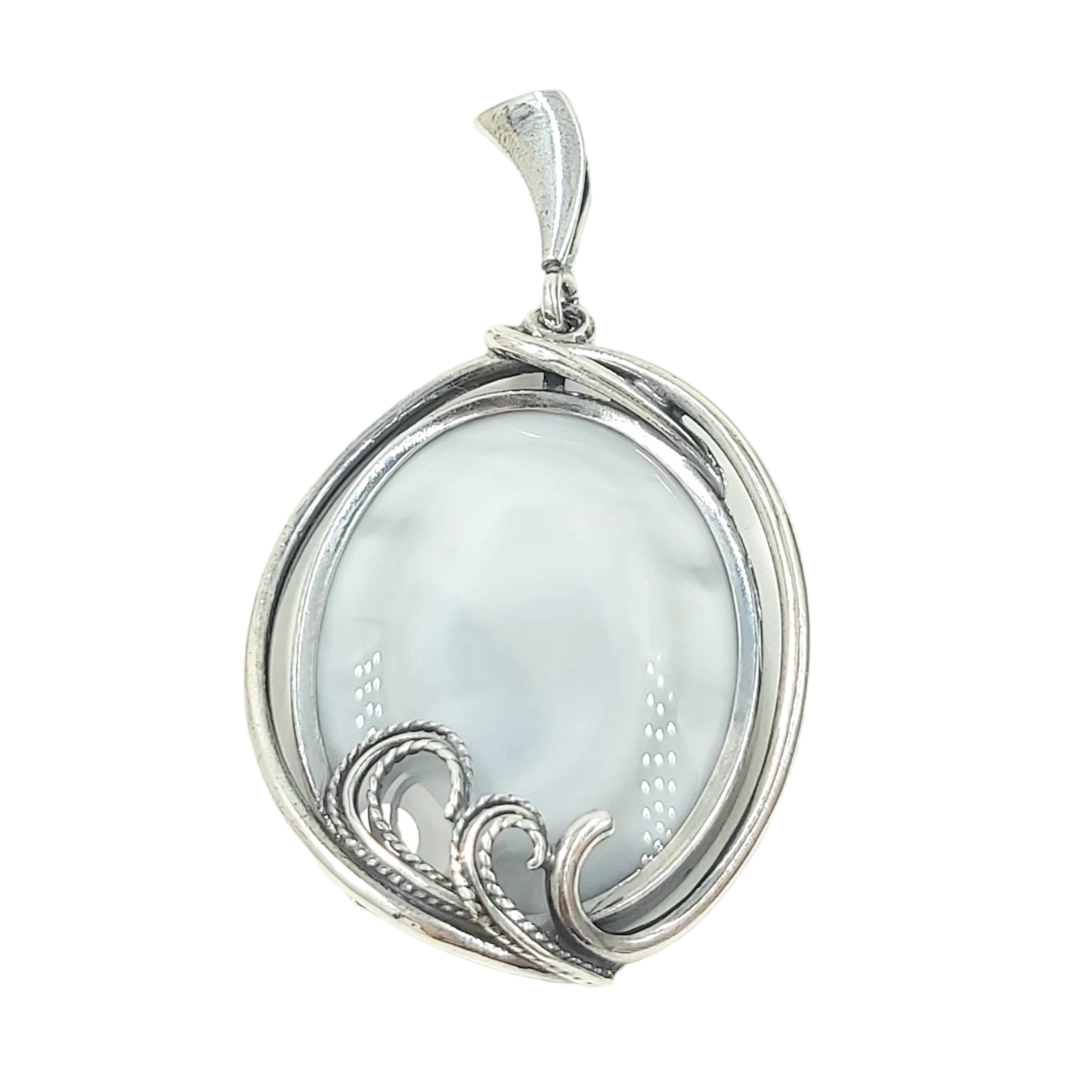 Zawieszka mała owalna z oksydowanego srebra z masą perłową