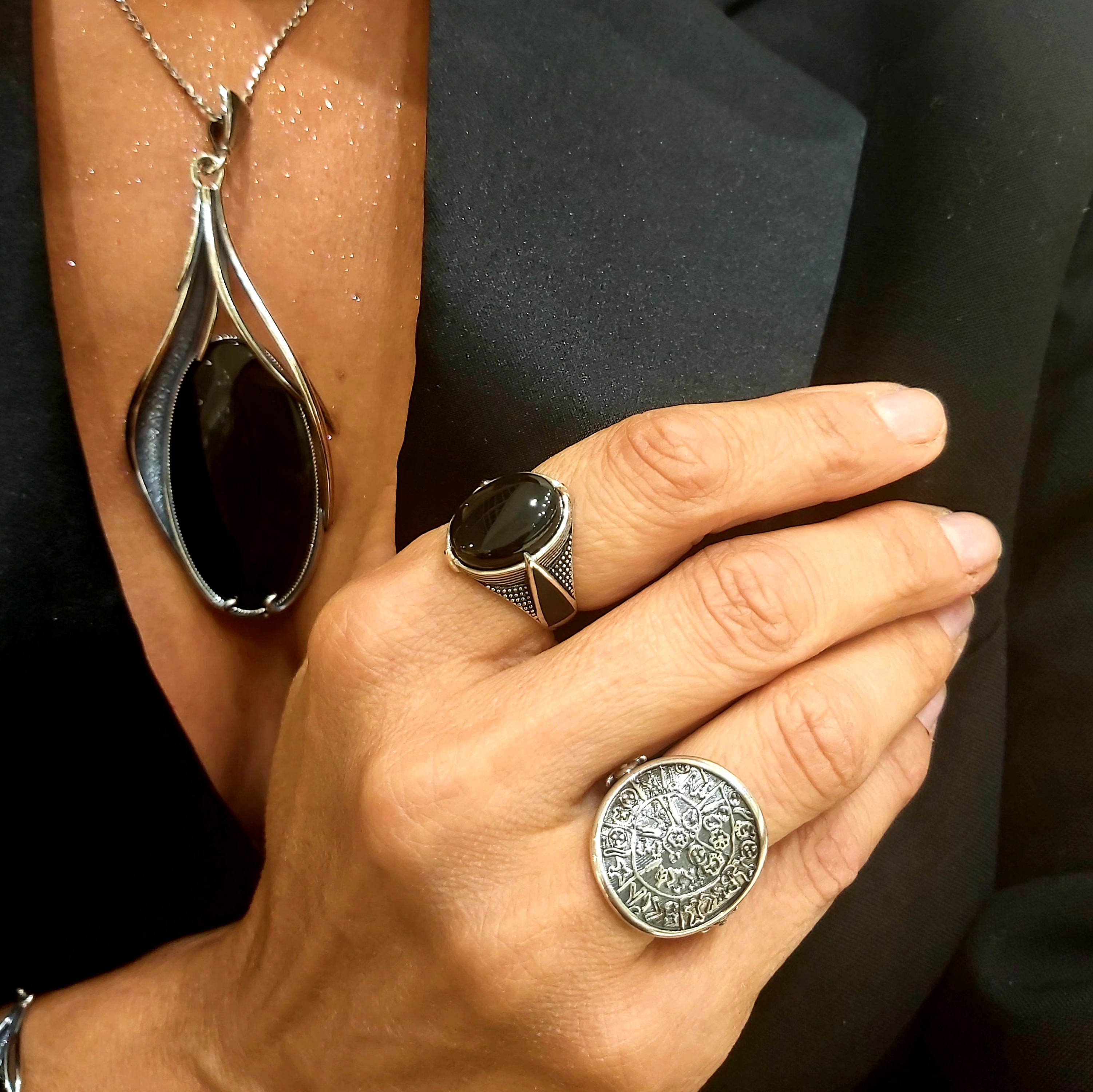 Srebrna zawieszka duża z kamieniem Noc Kairu
