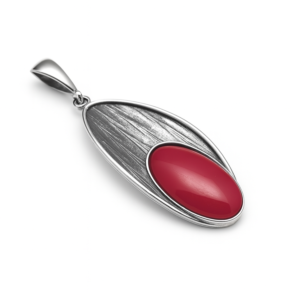 Zawieszka srebrna duża z koralem w grawerowanej oprawie