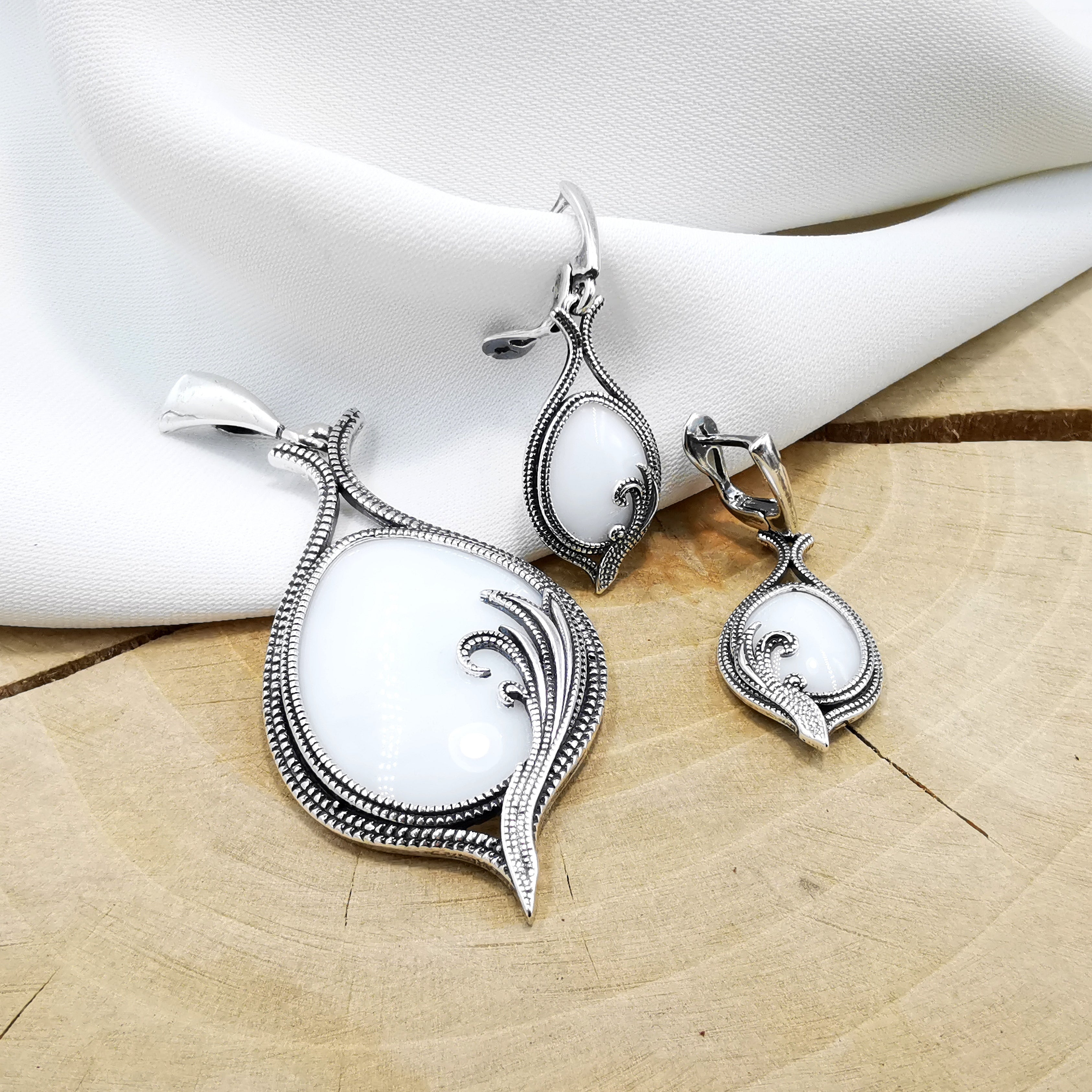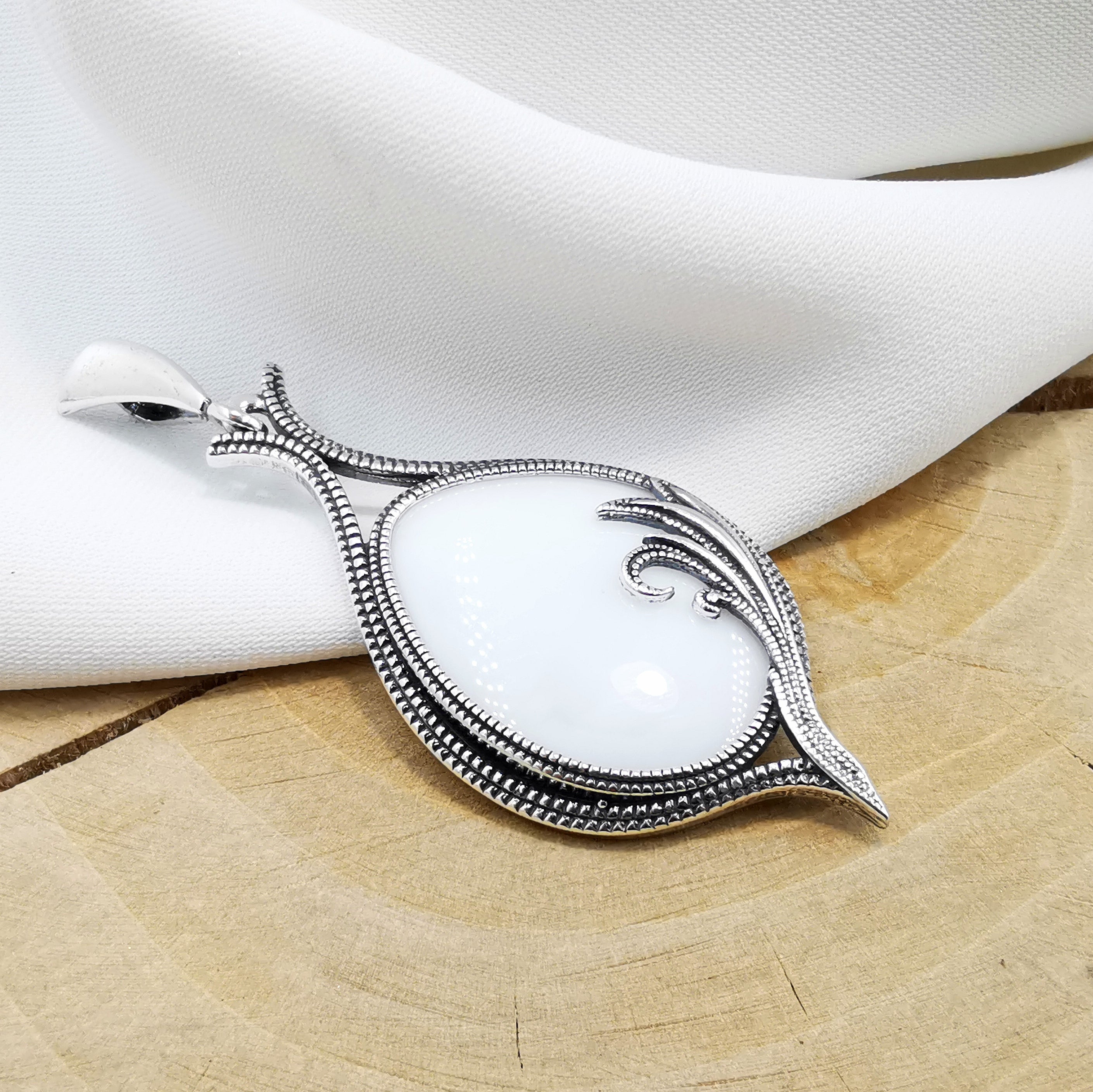 Zawieszka srebrna z białym kwarcem