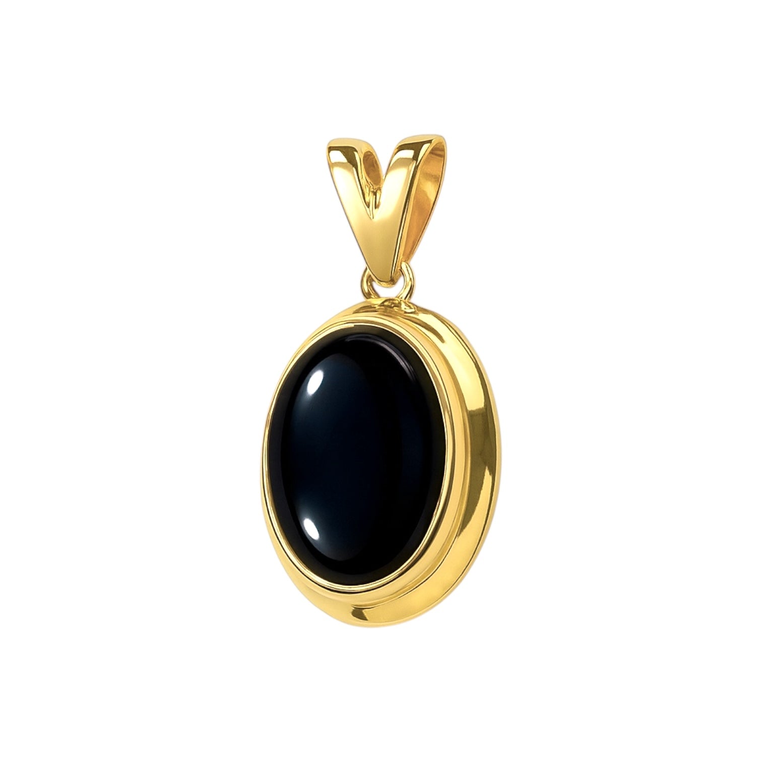 Złota zawieszka z onyksem w gładkiej złotej oprawie