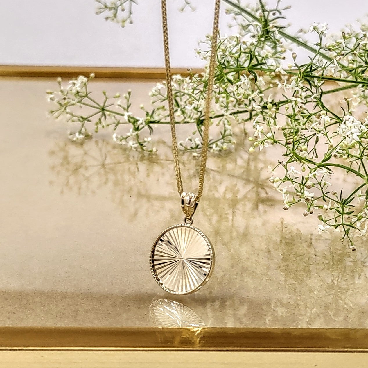 Zawieszka złota owalna - puzderko z kwiatowym wzorem