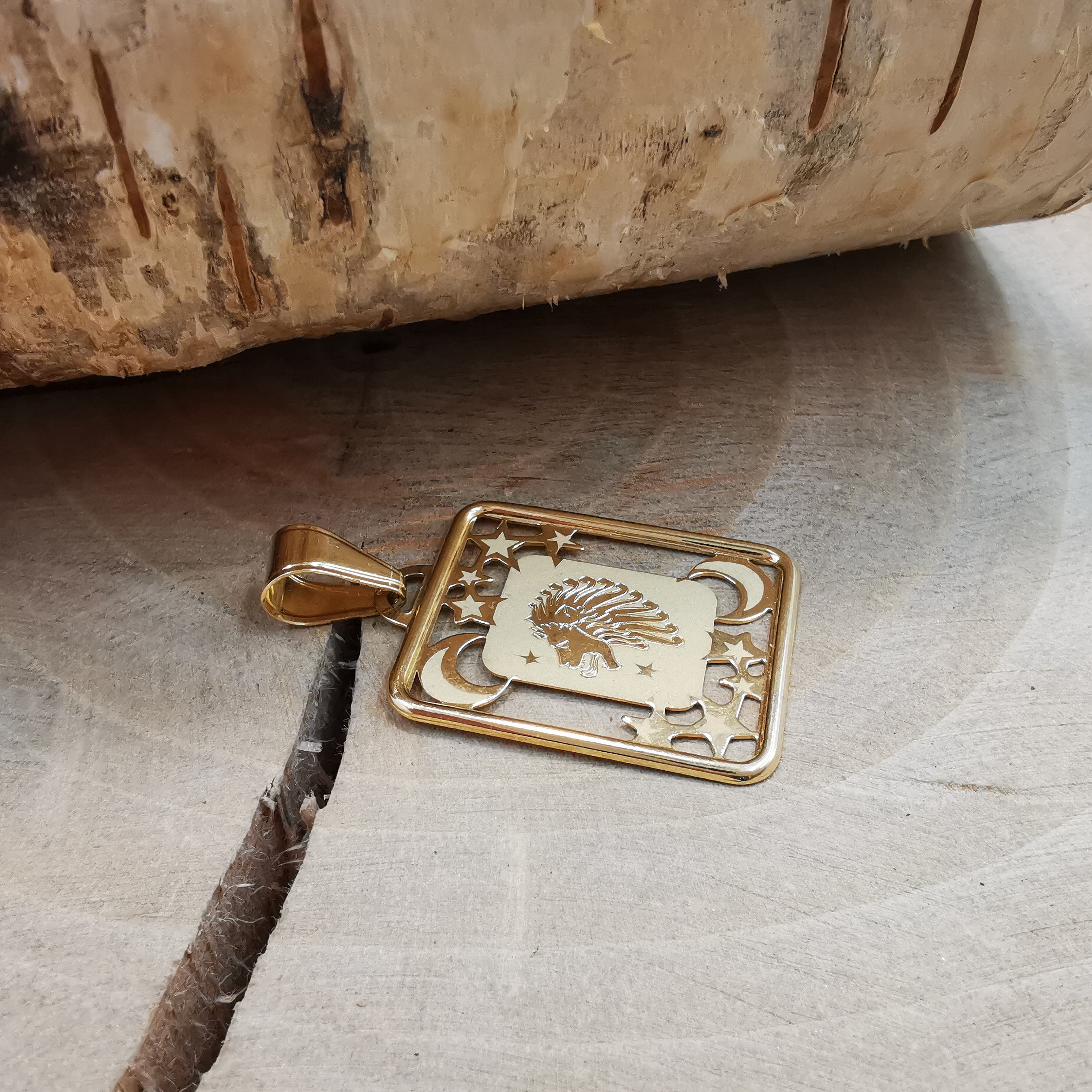 Zawieszka złota z rodolitami, rubinami i diamentami