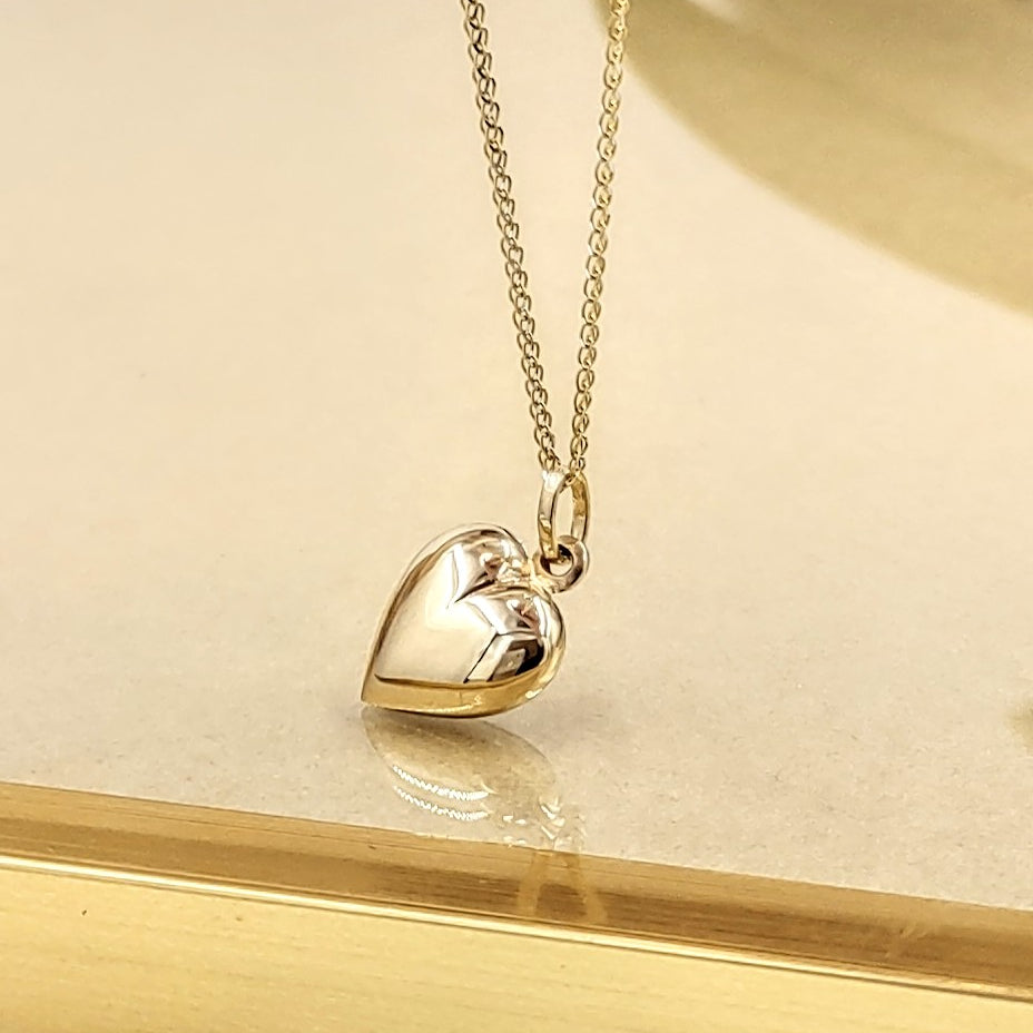 Zawieszka ażurowa w kształcie serca, wykonana z dwukolorowego złota próby 333.