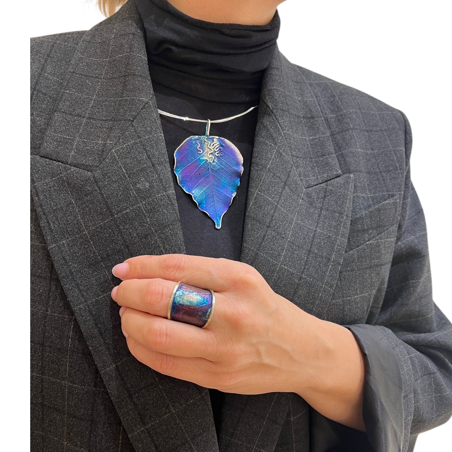 Bransoletka artystyczna fioletowo niebieski liść Dorian Grabowski