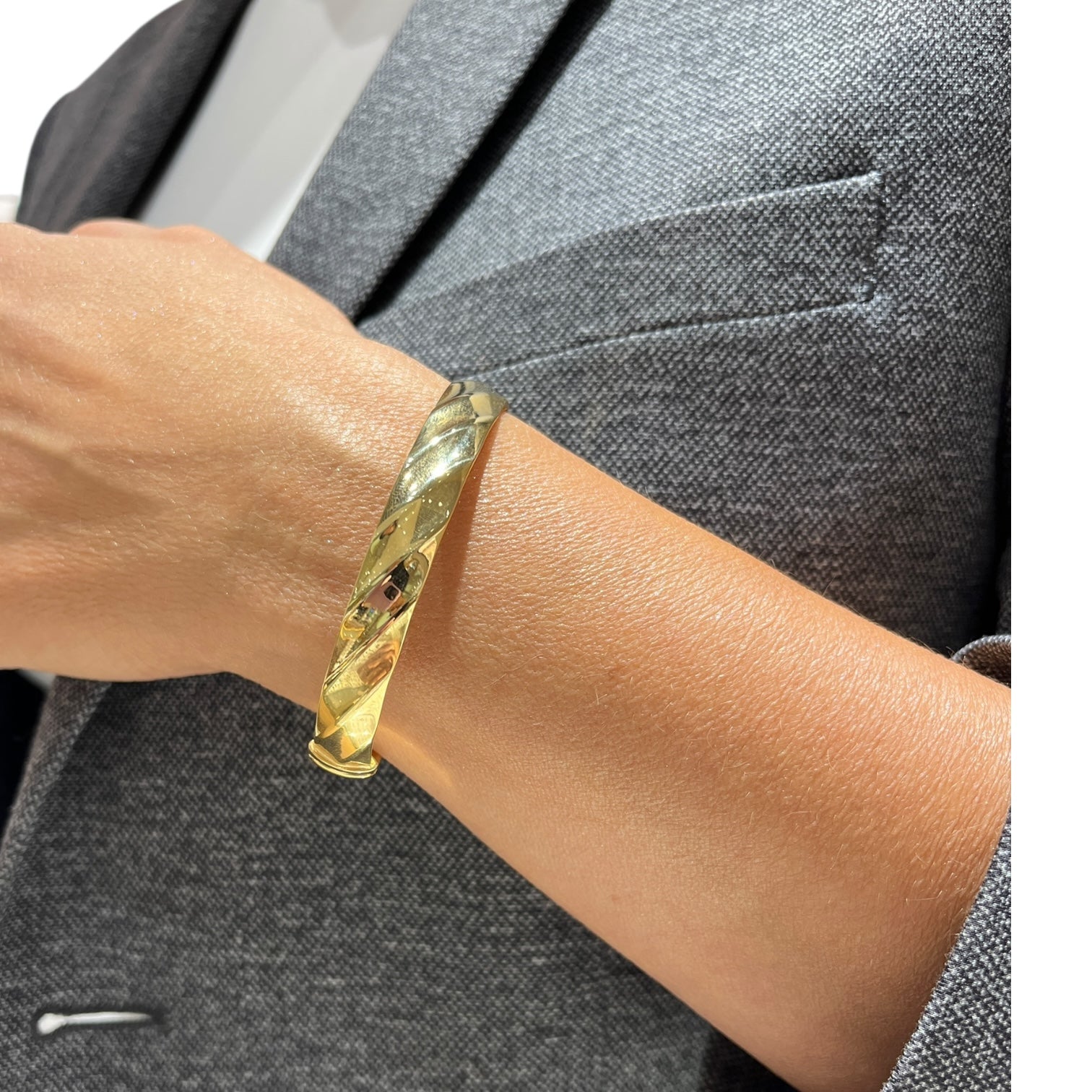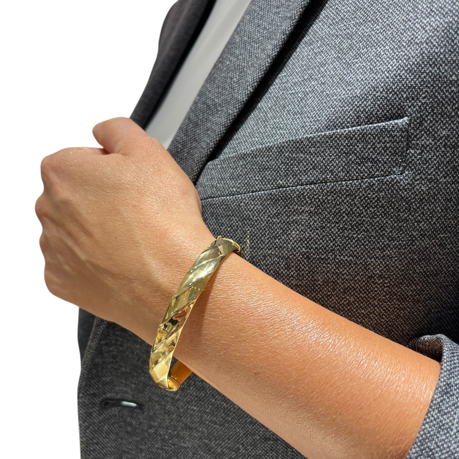 Zachwycająca w swojej prostocie i subtelności – ta sztywna bransoletka mankietowa wykonana ze złota próby 585 to kwintesencja nowoczesnej elegancji. Delikatniejsza forma i  nadają jej lekkości i ponadczasowego charakteru.