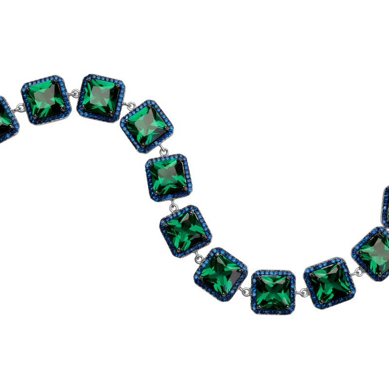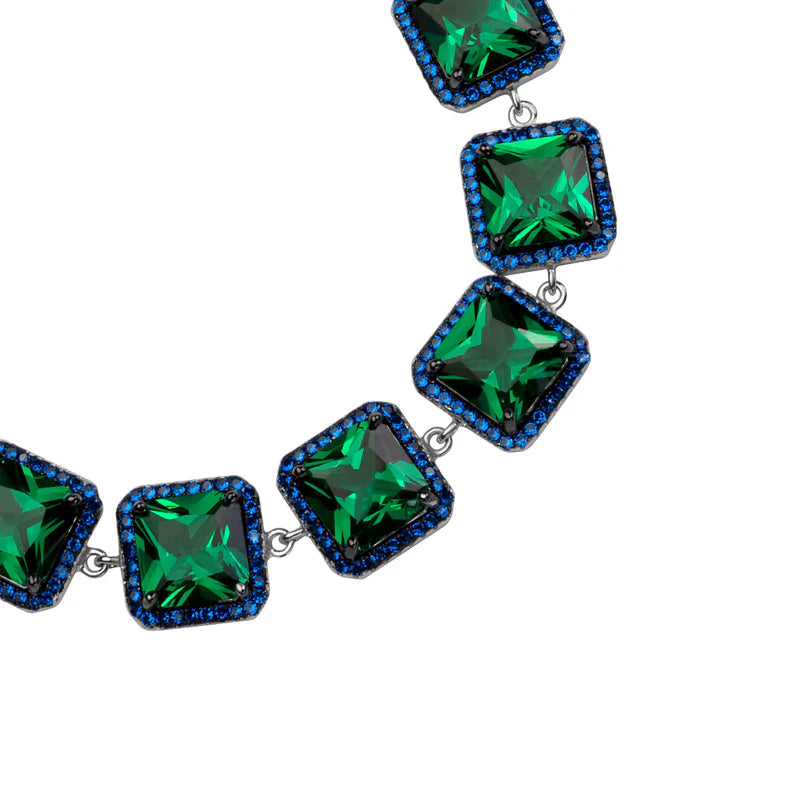 Bransoletka srebrna ogniwkowa z granatowymi i zielonymi cyrkoniami
