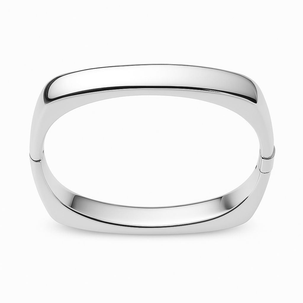 Stylowa, sztywna bransoletka wykonana ze srebra próby 925. Gładka, połyskująca powierzchnia sprawia, że prezentuje się wyjątkowo elegancko i kobieco. To biżuteria, która pasuje do wszystkiego – od codziennych stylizacji po wieczorowe wyjścia.