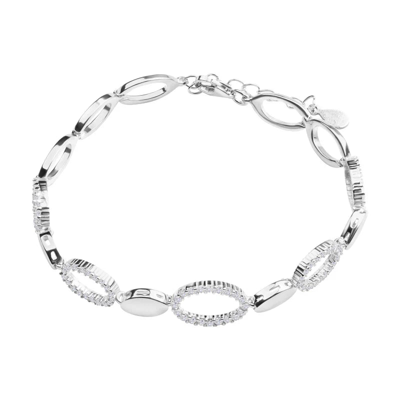 Bransoletka srebrna z cyrkoniami i polerowanymi ogniwami