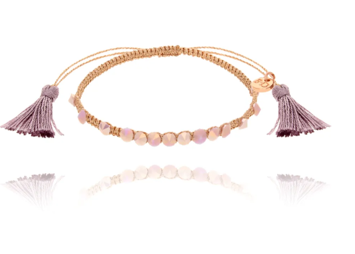 Bransoletka ze szklanymi koralikami ze stali szlachetnej na sznurku.