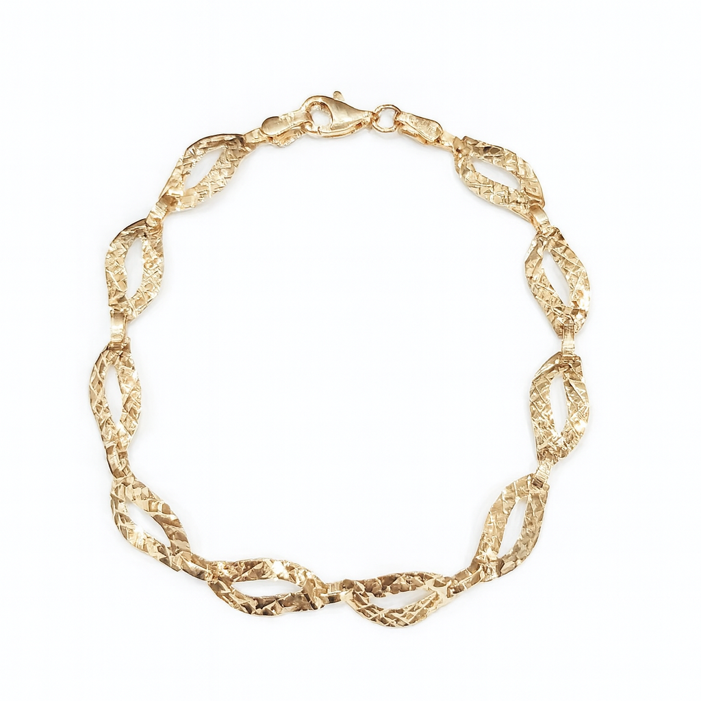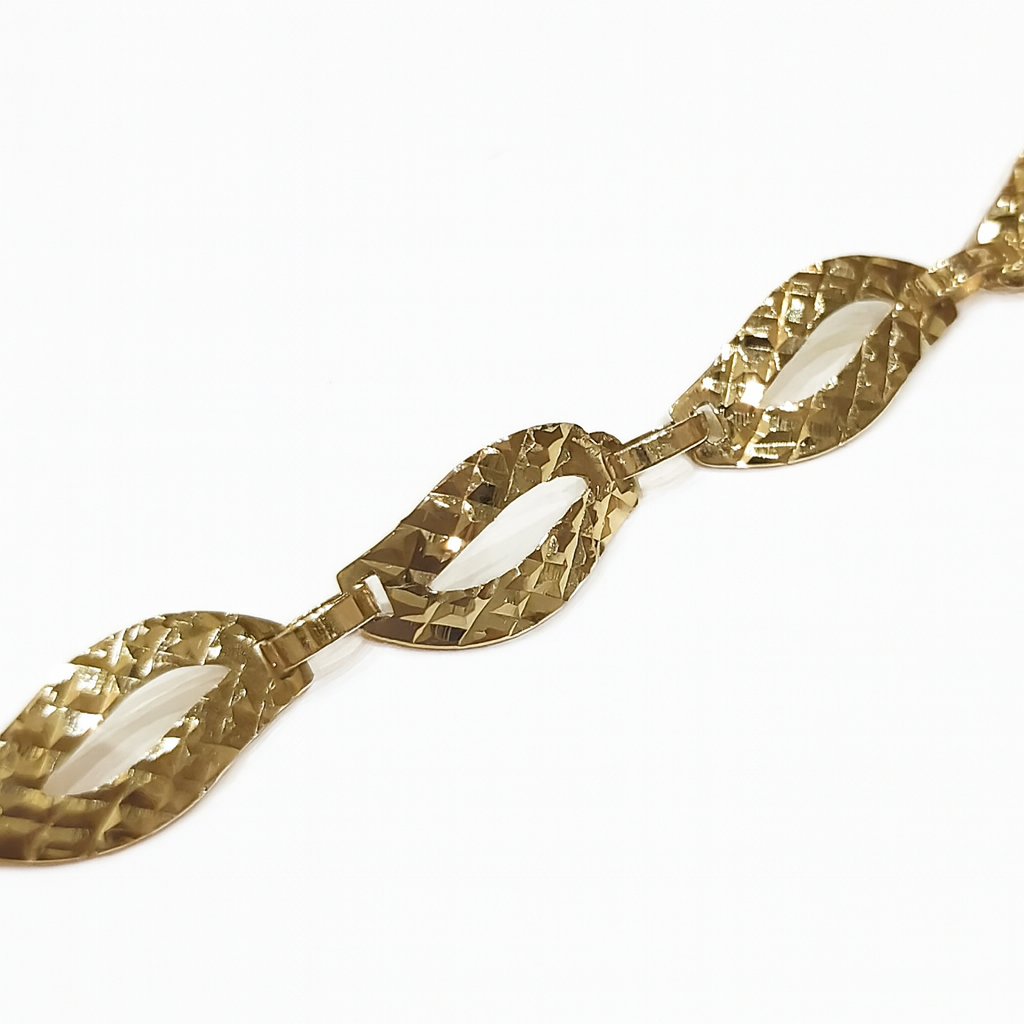 Odkryj elegancję z naszą wyjątkową bransoletką wykonaną z delikatnych blaszek z wyjątkowym grawerem ze złota próby 375. To doskonały wybór dla osób ceniących klasyczne wzornictwo z nutą luksusu. Idealna do noszenia na co dzień, jak i na specjalne okazje, ta bransoletka nie tylko podkreśli Twój styl, ale także przyciągnie spojrzenia.