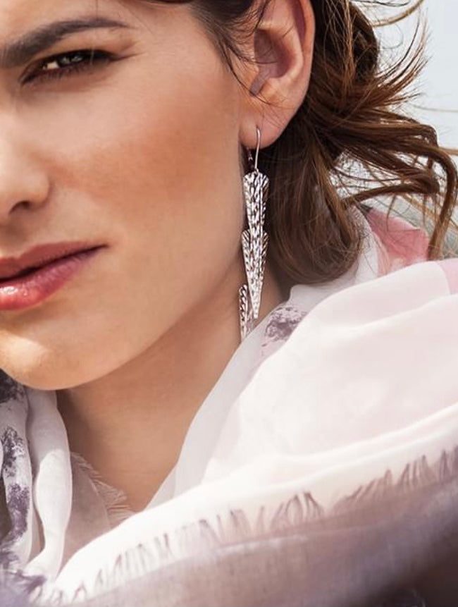 Bardzo lekkie i bardzo efektowne długie srebrne błyszczące kolczyki. Biżuteria zakupiona w Brilant zapakowana jest w eleganckie pudełko jubilerskie. ICS0256