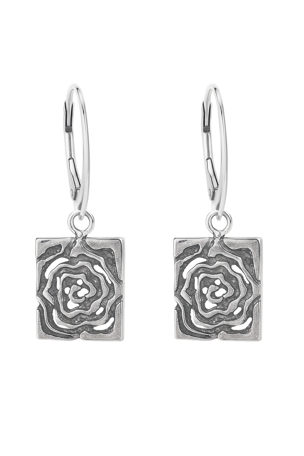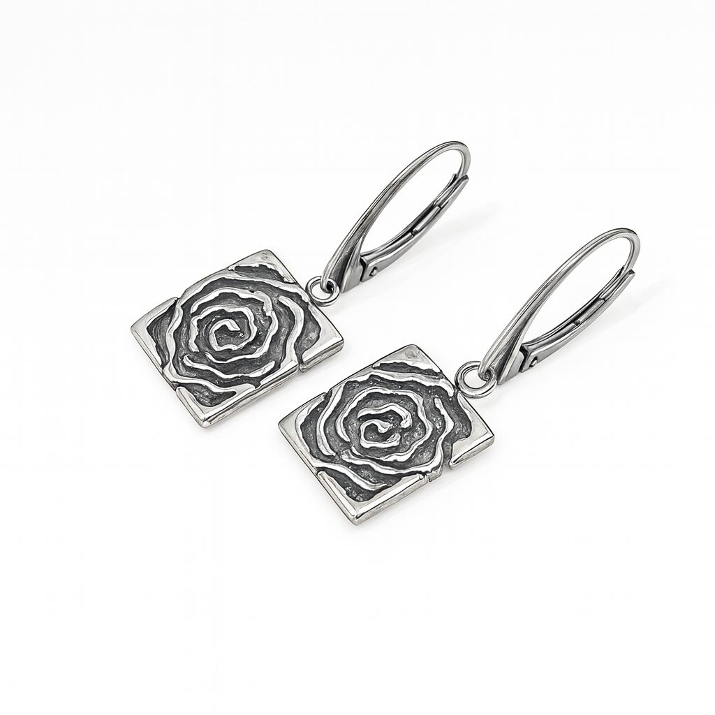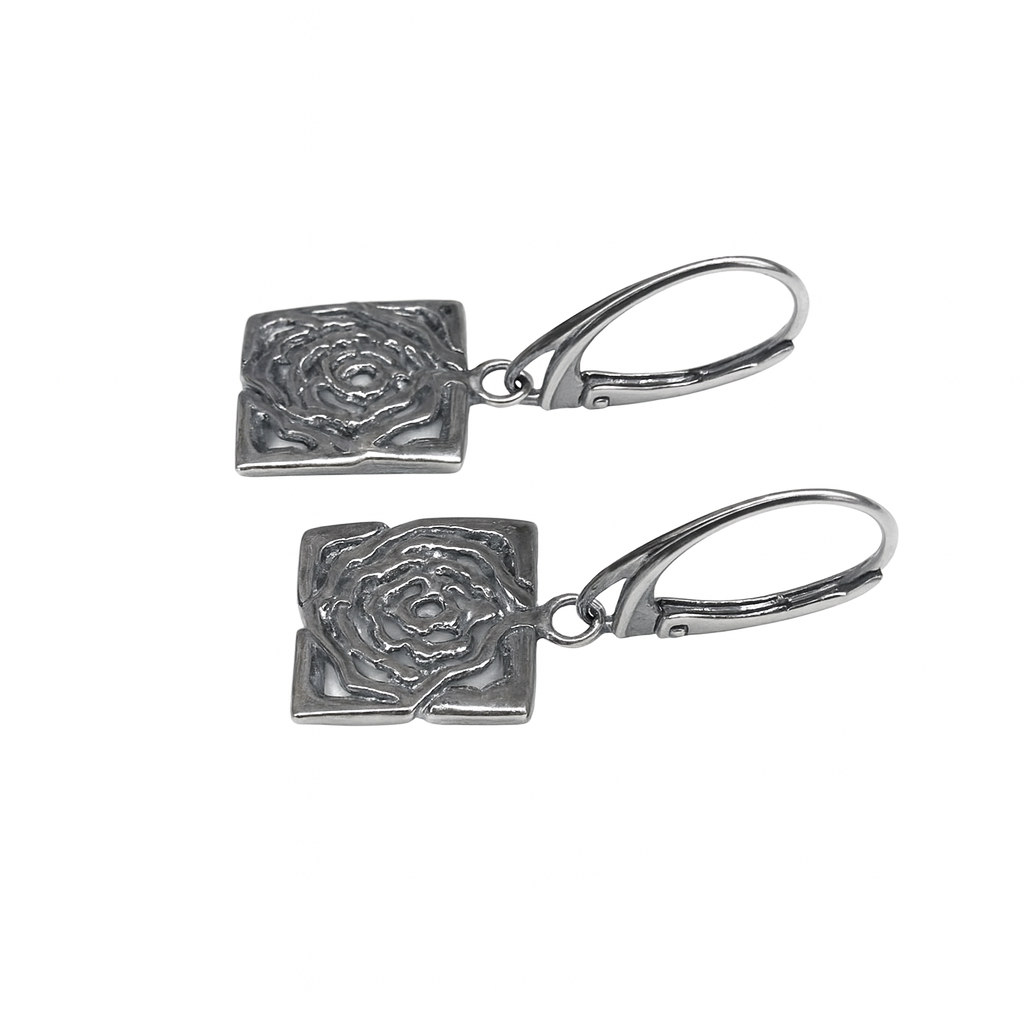 Kolczyki srebrne oksydowane- motyw róży