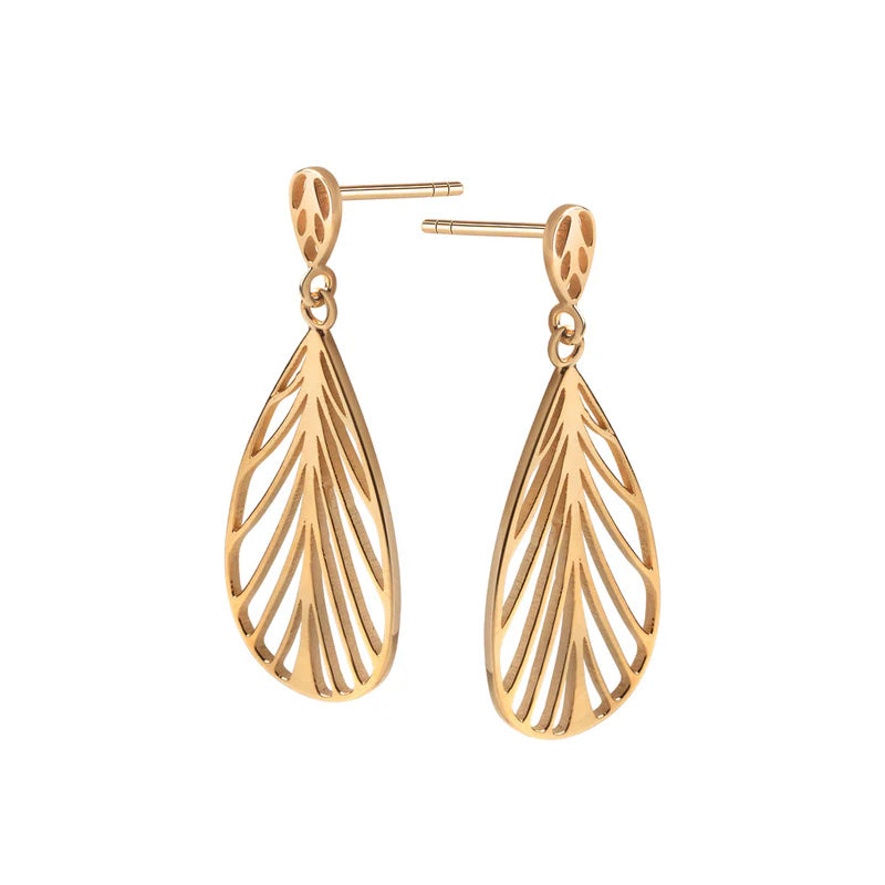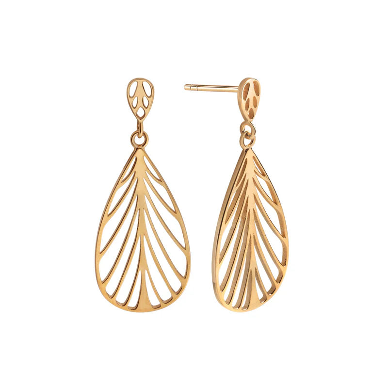 Kolczyki srebrne pozłacane listki ażurowe na sztyfcie