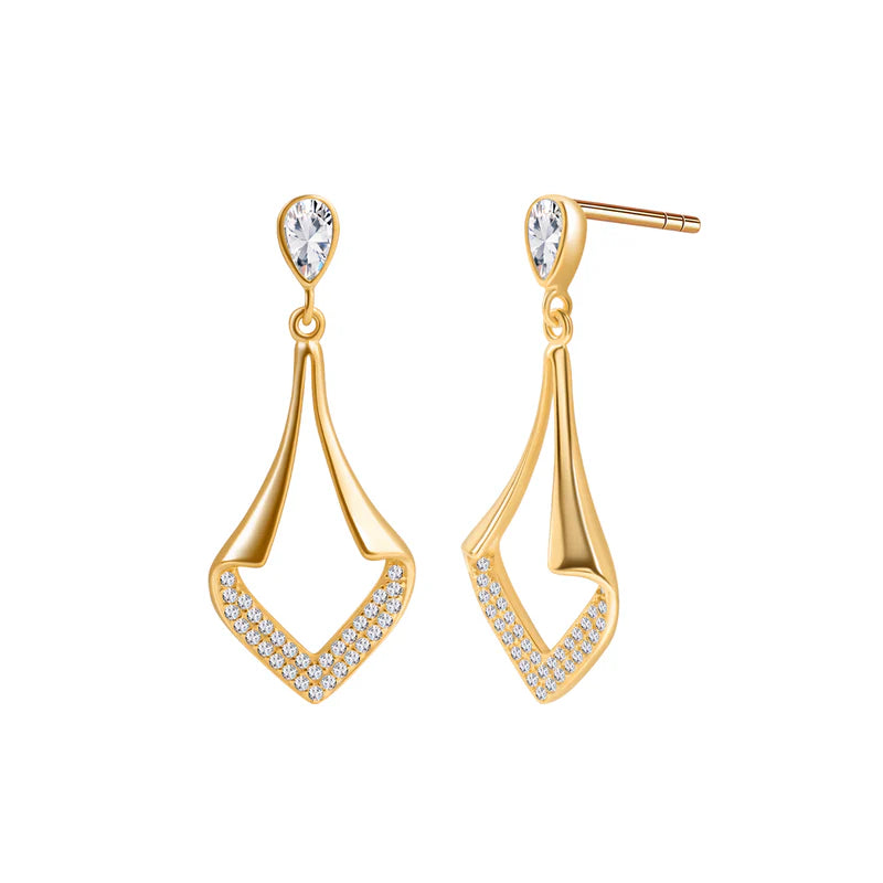 Wyjątkowe kolczyki wykonane ze srebra próby 925, pokryte trwałą warstwą złocenia, które nadaje im szlachetny blask. Elegancki kształt łezki w połączeniu z misternie wykonanym, ażurowym wzorem tworzy efektowny, a zarazem lekki wizualnie dodatek.