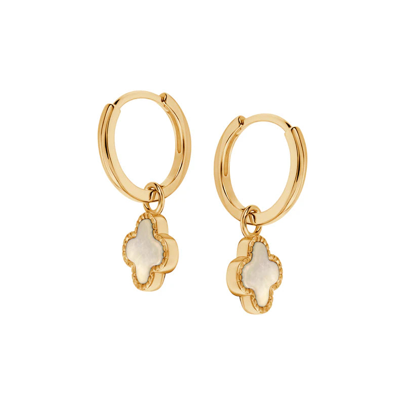 Stylowe i kobiece kolczyki wiszące wykonane ze srebra próby 925, pokryte warstwą eleganckiego złocenia. Subtelne kółeczka ozdobione zostały zawieszką w kształcie czterolistnej koniczyny, wypełnioną masą perłową. Symbol szczęścia w nowoczesnym wydaniu – minimalistycznym, a jednocześnie przyciągającym wzrok. JS54756