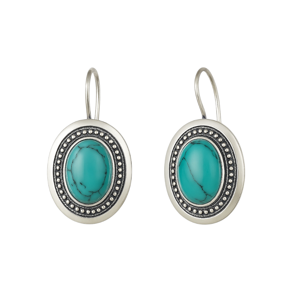 Wyjątkowe, srebrne kolczyki wiszące z głęboko granatowym kamieniem Noc Kairu, który hipnotyzuje połyskującymi drobinkami przypominającymi rozgwieżdżone niebo. Elegancka oprawa ze srebra próby 925 pięknie podkreśla urok kamienia, a klasyczny owalny kształt dodaje biżuterii ponadczasowego charakteru.