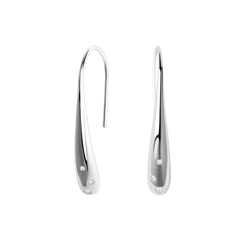 Kolczyki wiszące z cyrkonią, wykonane ze srebra próby 0,925. Zapięcie bigiel otwarty. JS53230