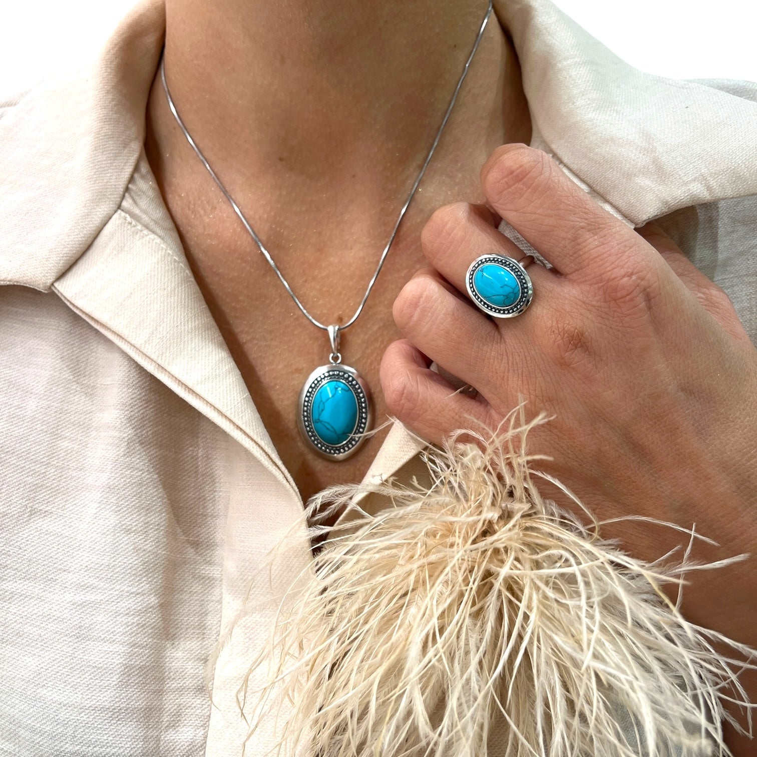 Srebrne kolczyki z turkusem, które zachwycają swoim klasycznym stylem i ponadczasowym urokiem. Wykonane ze srebra próby 925, ozdobione naturalnym turkusem o pięknej, intensywnej barwie i unikalnym wyglądzie.