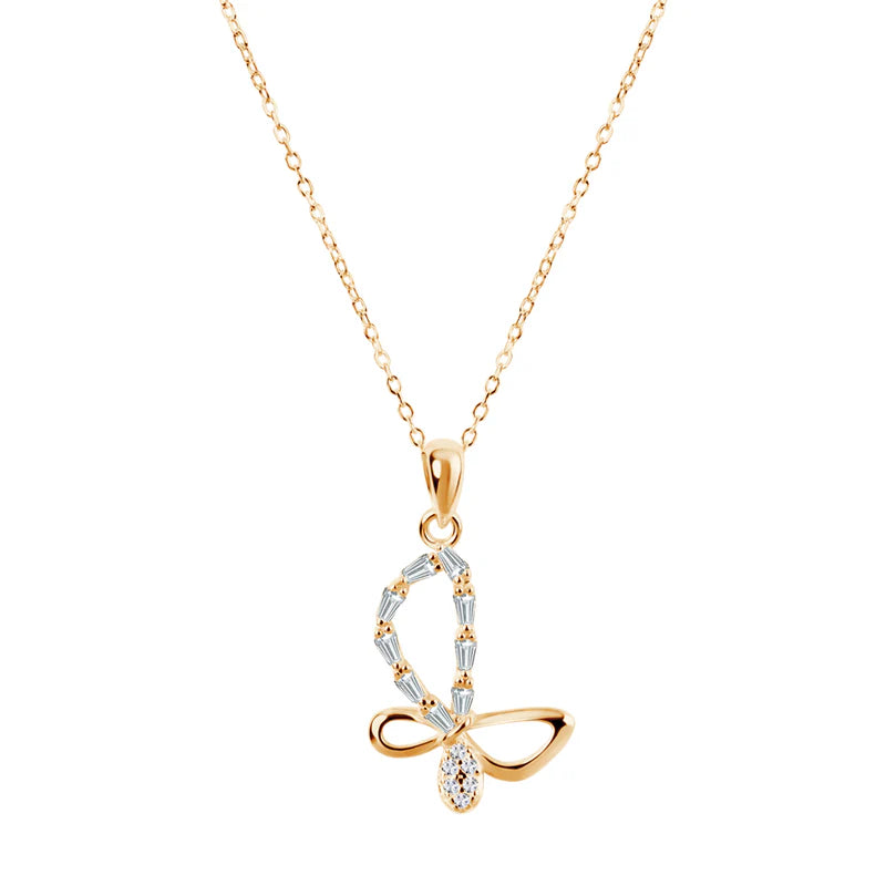 Naszyjnik srebrny pozłacany z cyrkoniami i motylem