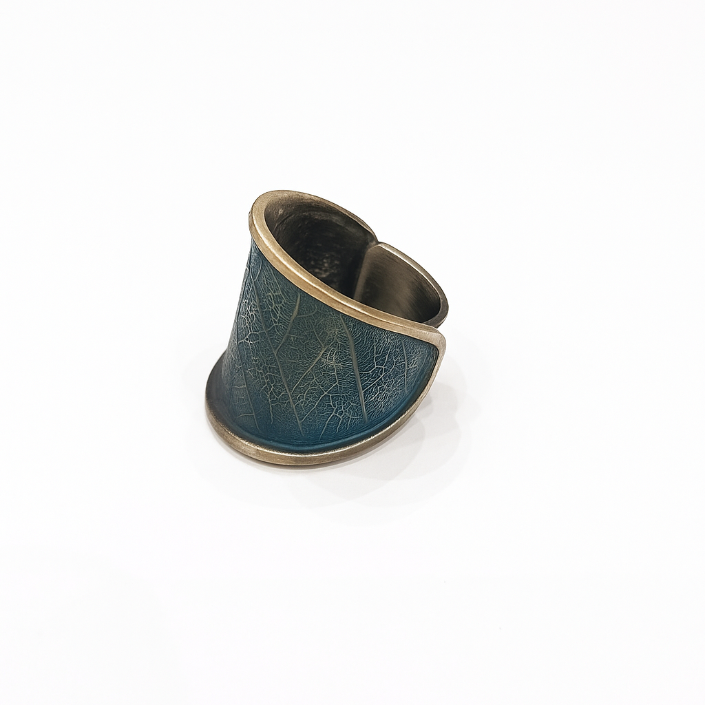 Pierścionek artystyczny liść niebieski Dorian Grabowski