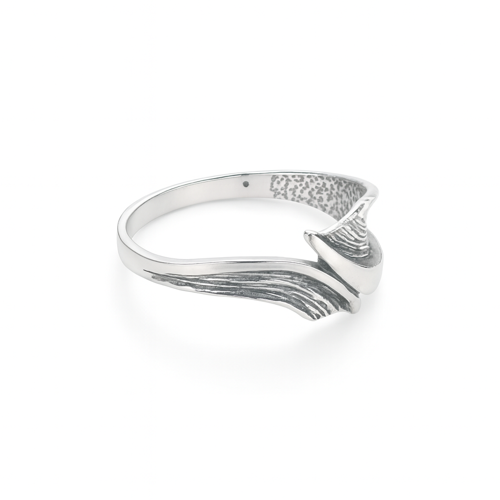 Pierścionek z motywem liścia, wykonany ze srebra próby 925.