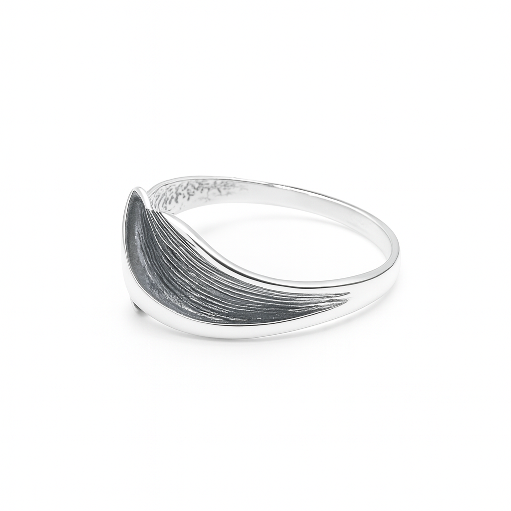 Delikatny pierścionek wykonany ze srebra próby 925, inspirowany naturalnym kształtem liścia. Oksydowane detale podkreślają fakturę i nadają biżuterii wyjątkowego charakteru. To połączenie natury i elegancji w artystycznym wydaniu – idealne dla kobiet ceniących subtelny, ale wyrazisty styl.