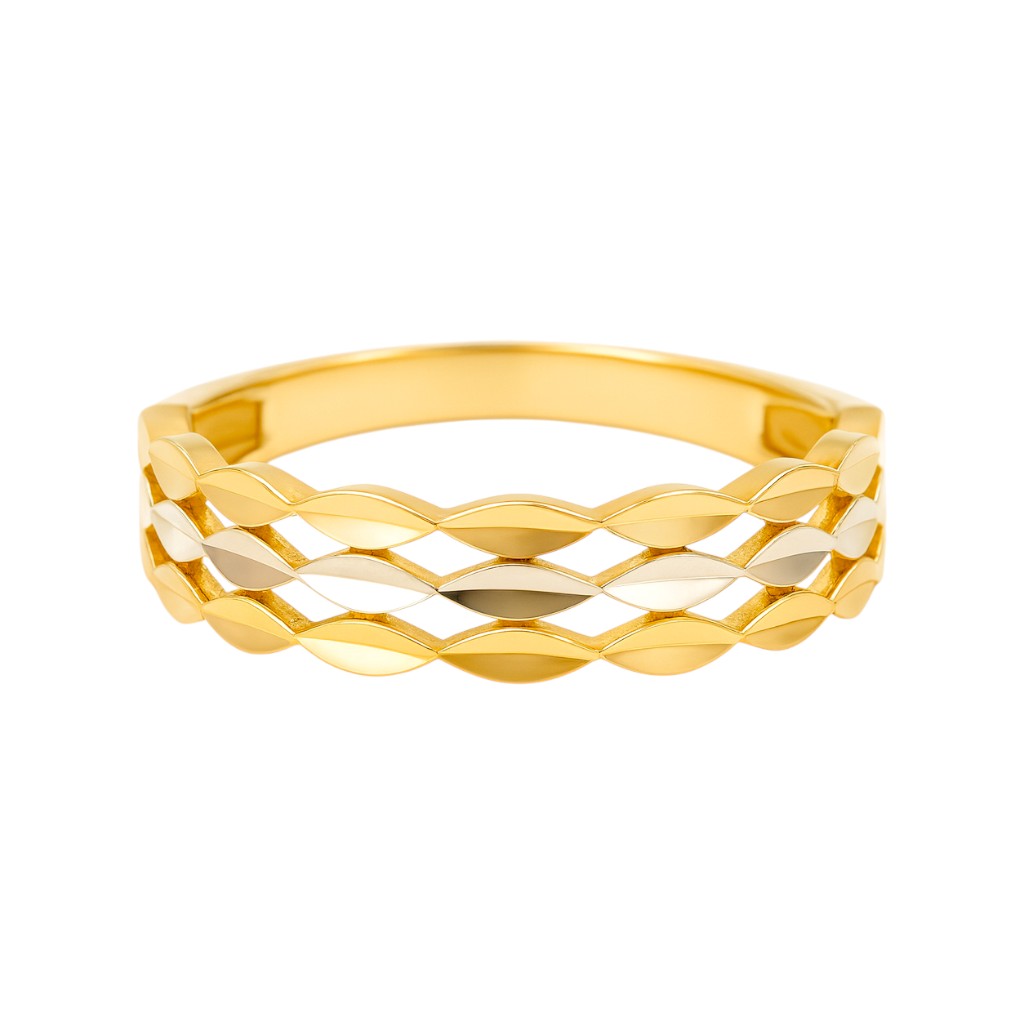 Oryginalny pierścionek wykonany z żółtego złota próby 585. Jego unikalny kształt i bogato zdobiona powierzchnia z geometrycznym, ażurowym wzorem sprawiają, że biżuteria przyciąga spojrzenia i podkreśla indywidualny styl. Lekka forma mimo efektownego wyglądu zapewnia wygodę noszenia na co dzień i od święta.