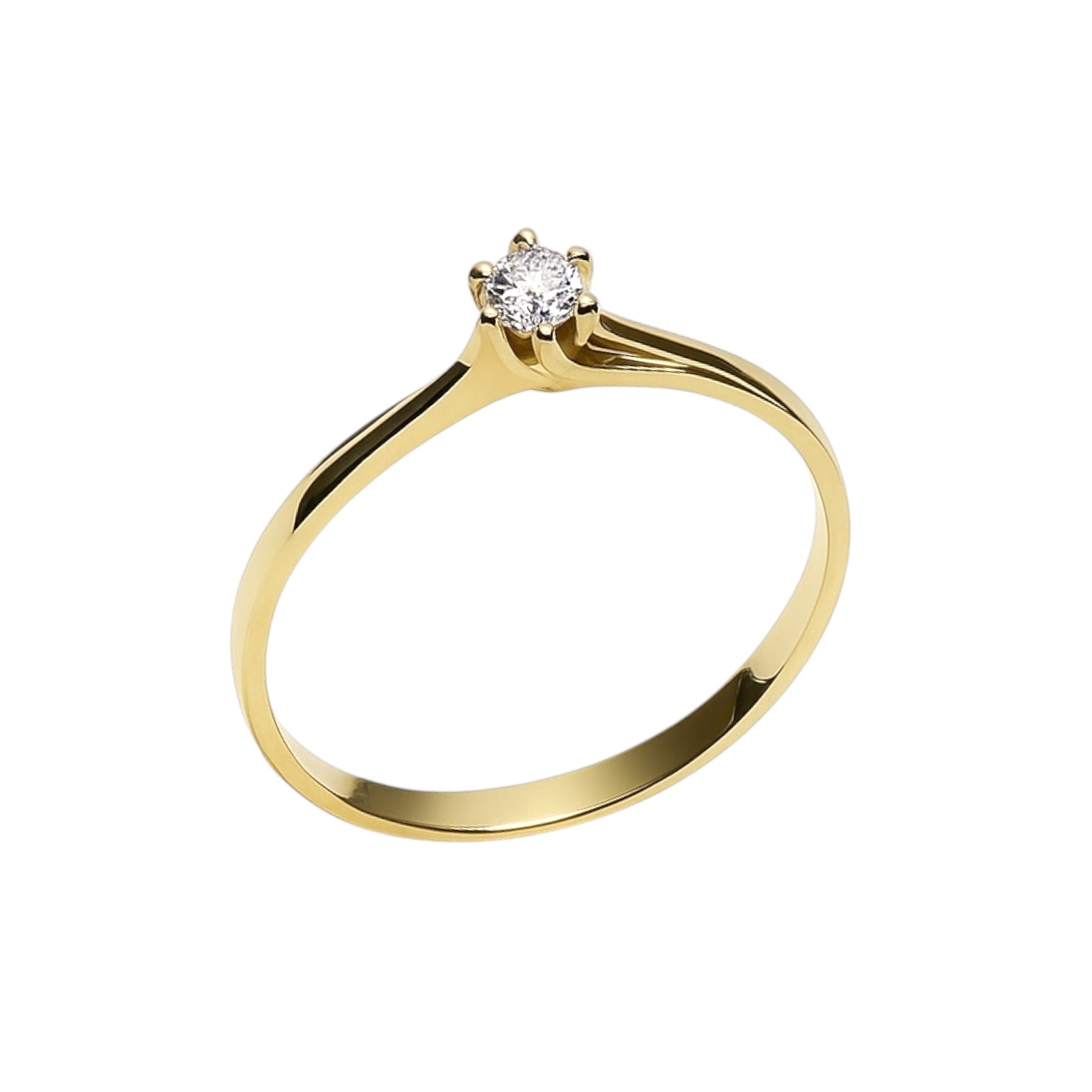 Pierścionek z cyrkonią złapaną w sześciu łapkach, wykonany ze złota próby 585.