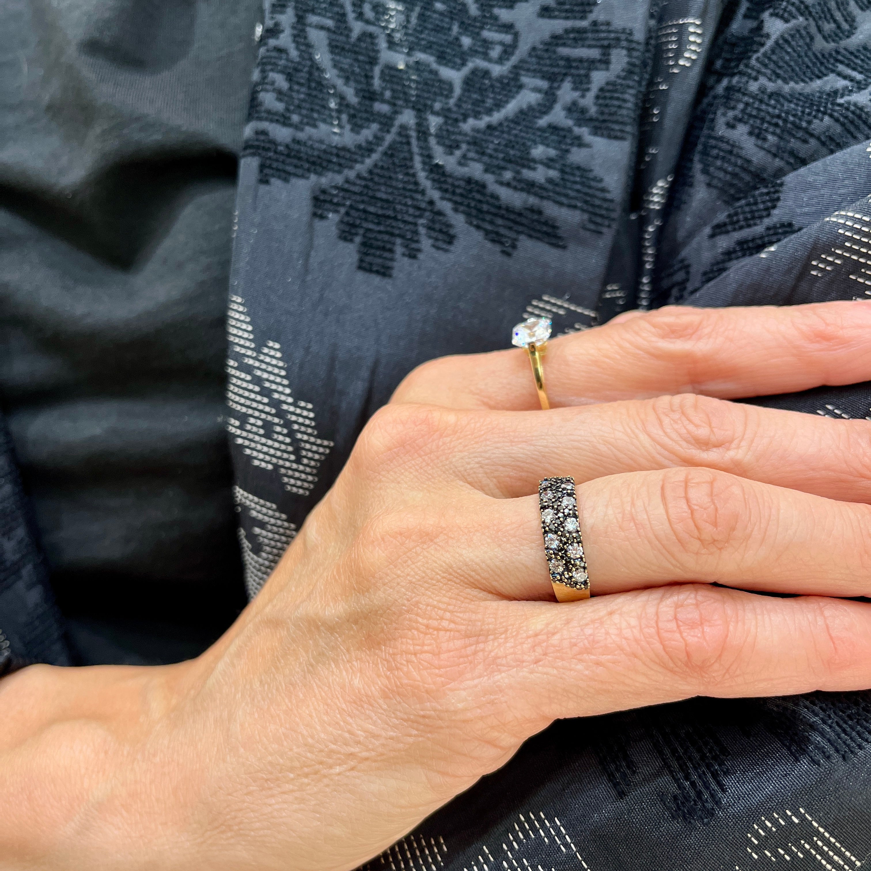 Pierścionek ozdobiony cyrkonią, wykonany ze złota próby 585.