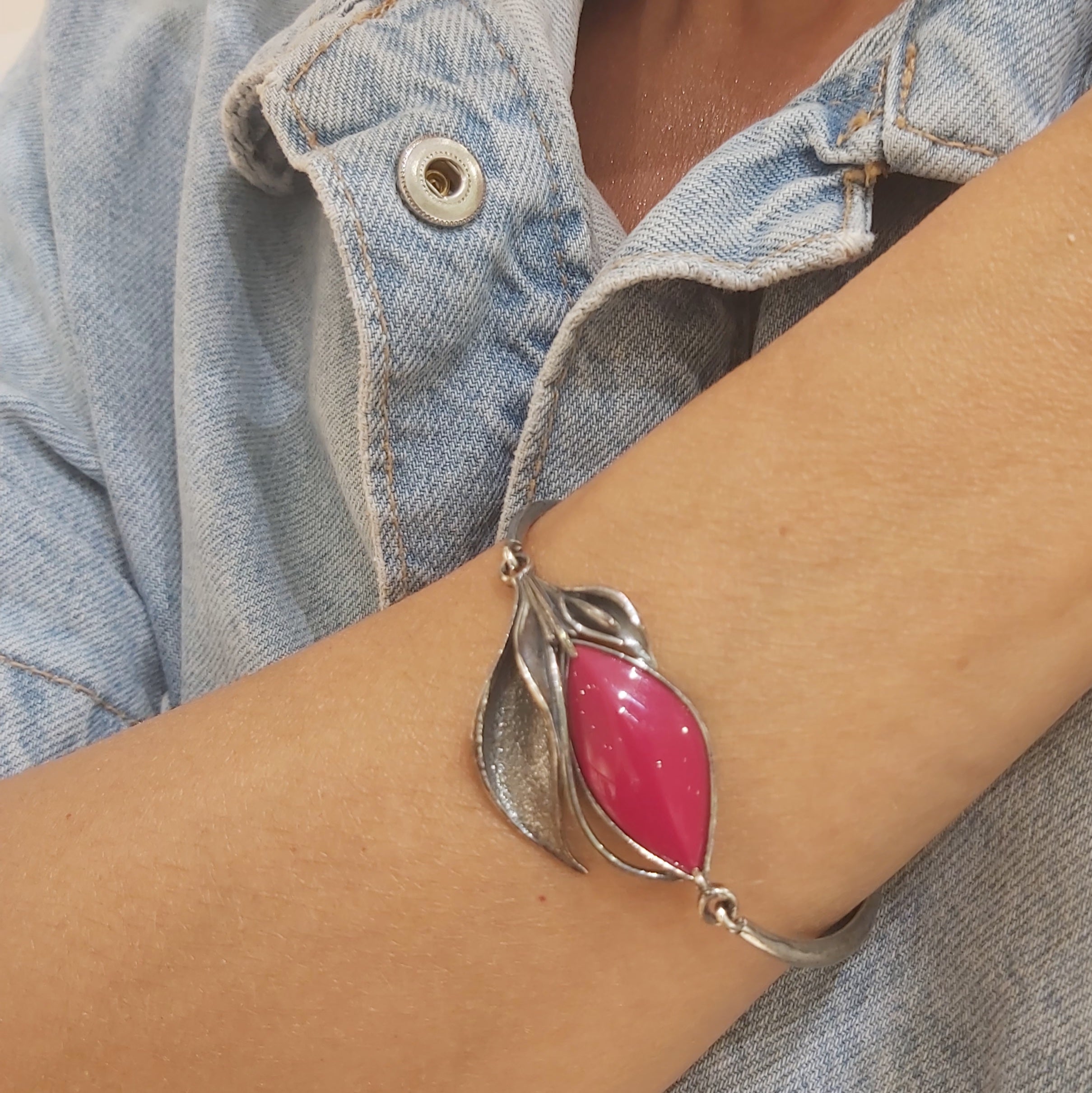 Srebrna bransoletka z czerwonym kwarcem-kalie