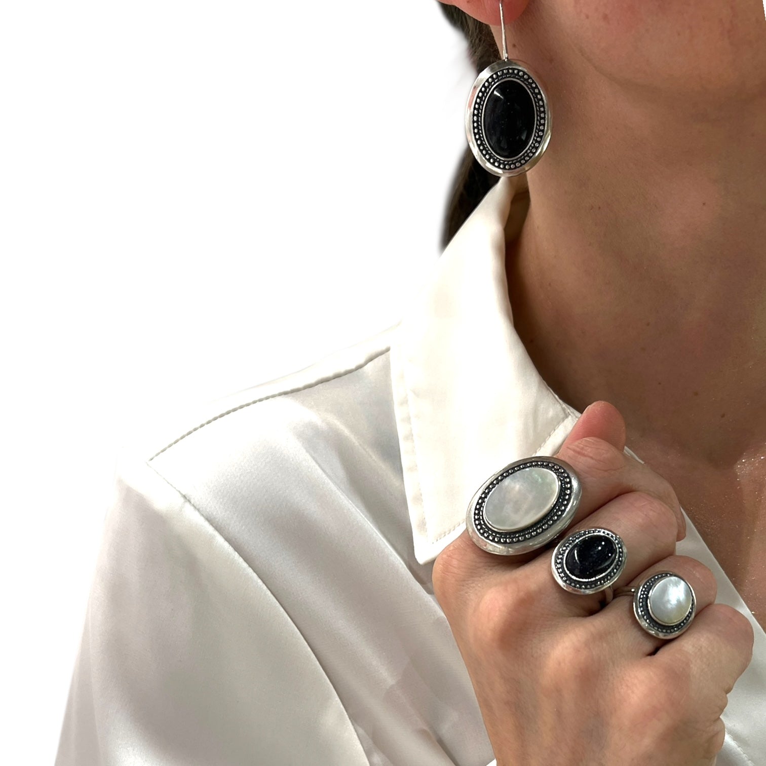 Kolczyki duże owalne z oksydowanego srebra z masą perłową