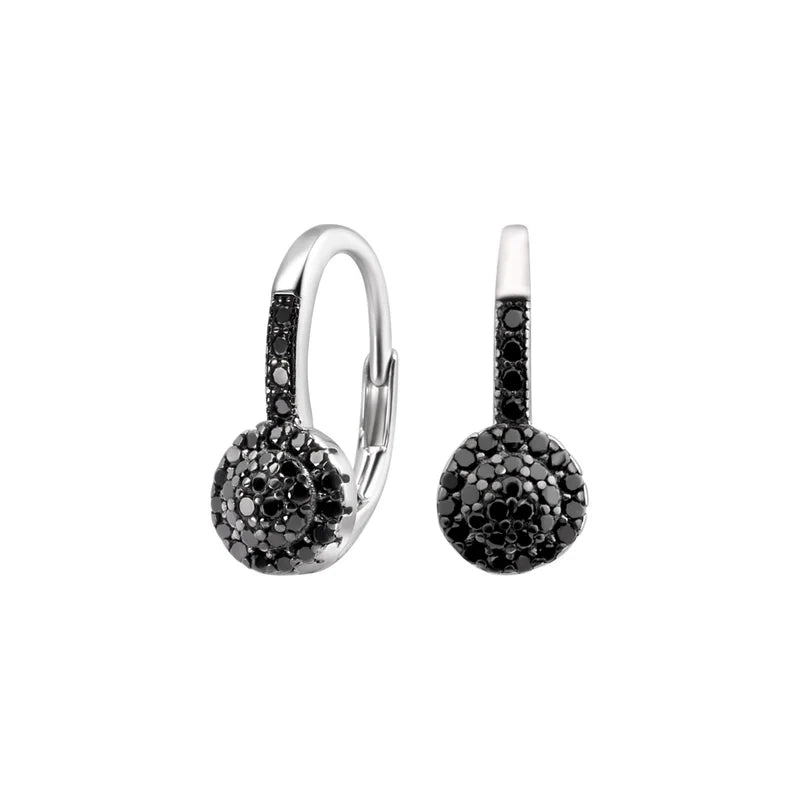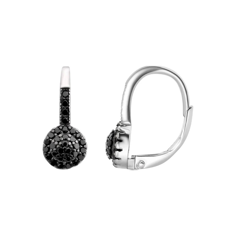 Kolczyki z czarnymi cyrkoniami, wykonane ze srebra próby 925. Zapięcie bigiel.