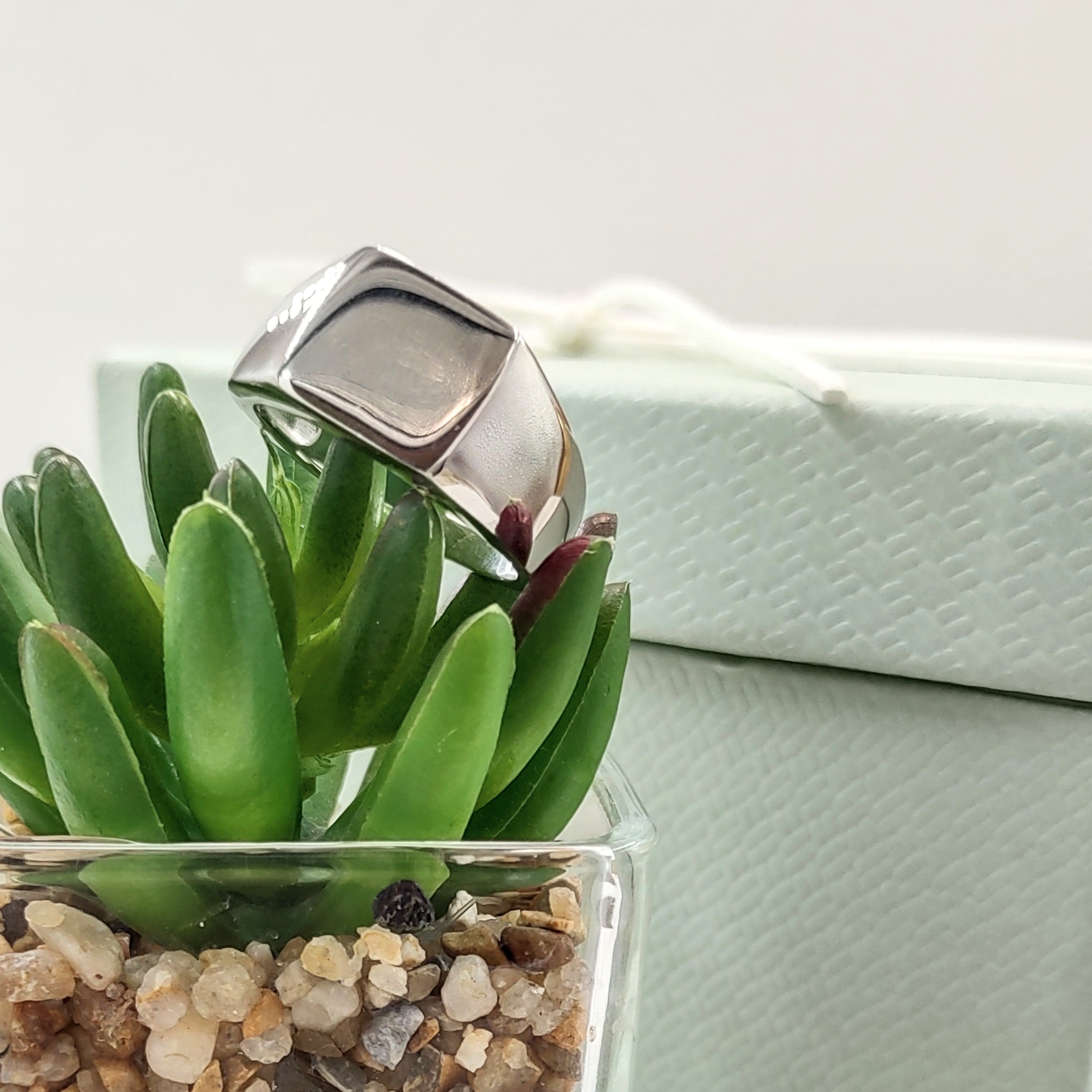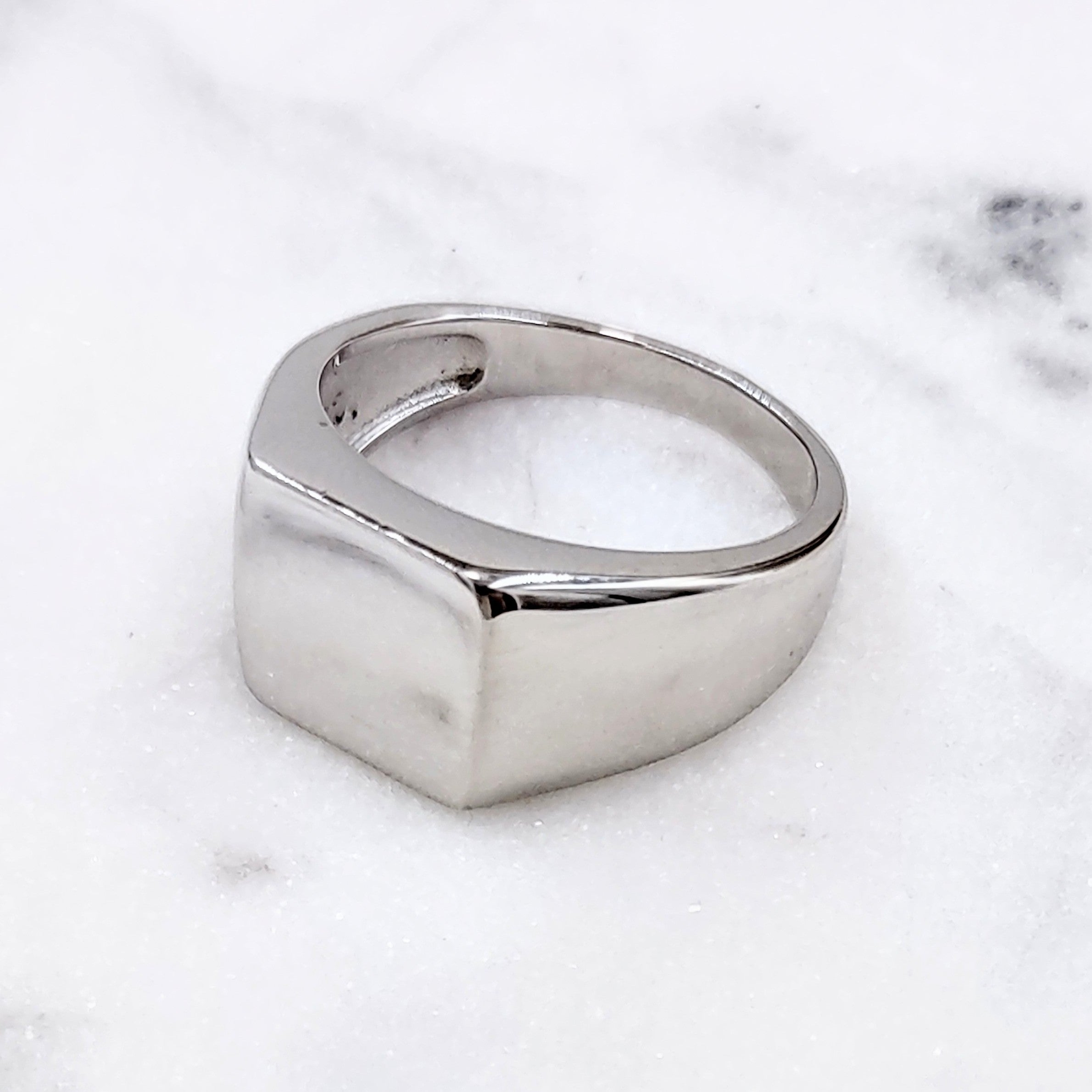 Pierścionek gładki typu sygnet, wykonany ze srebra próby 925.