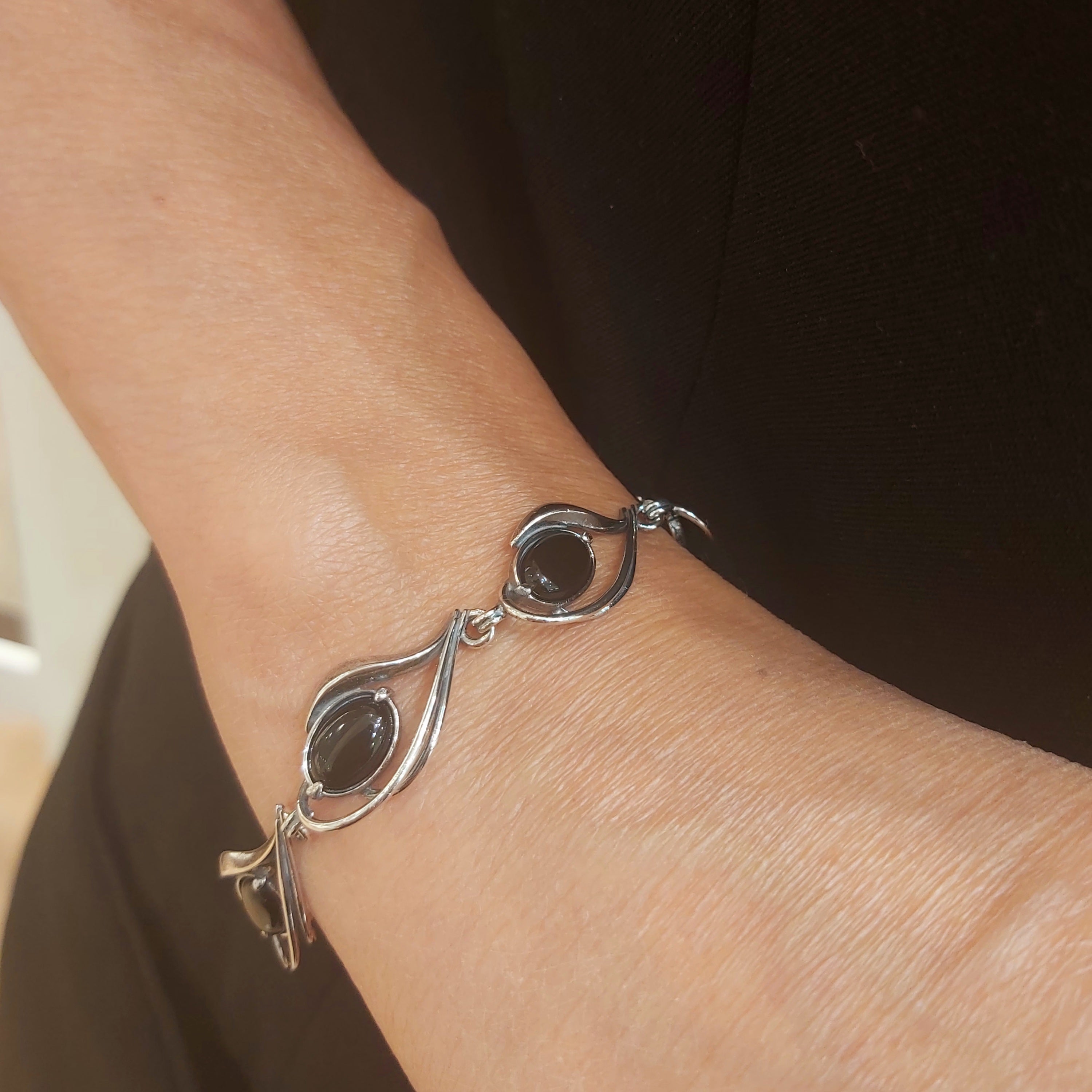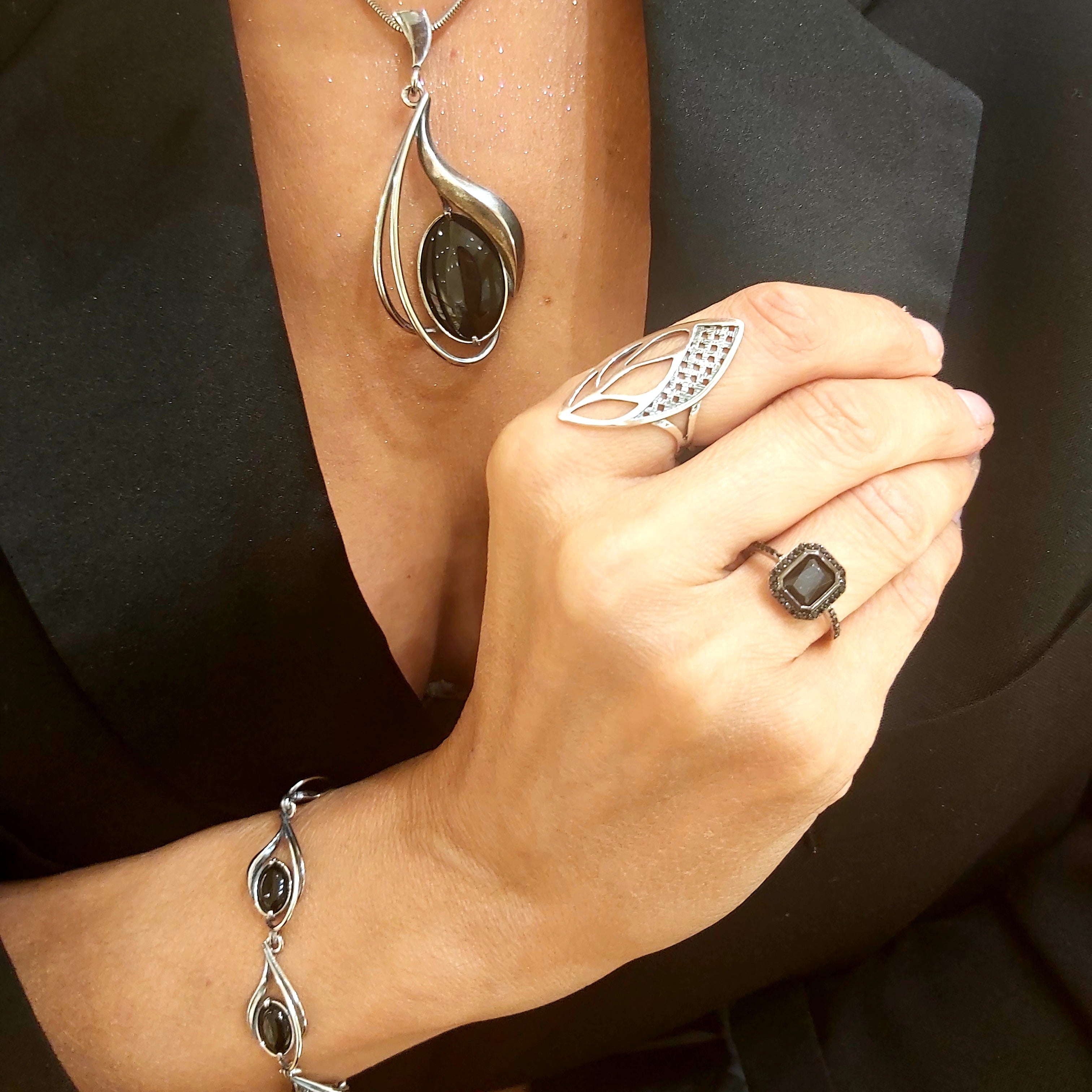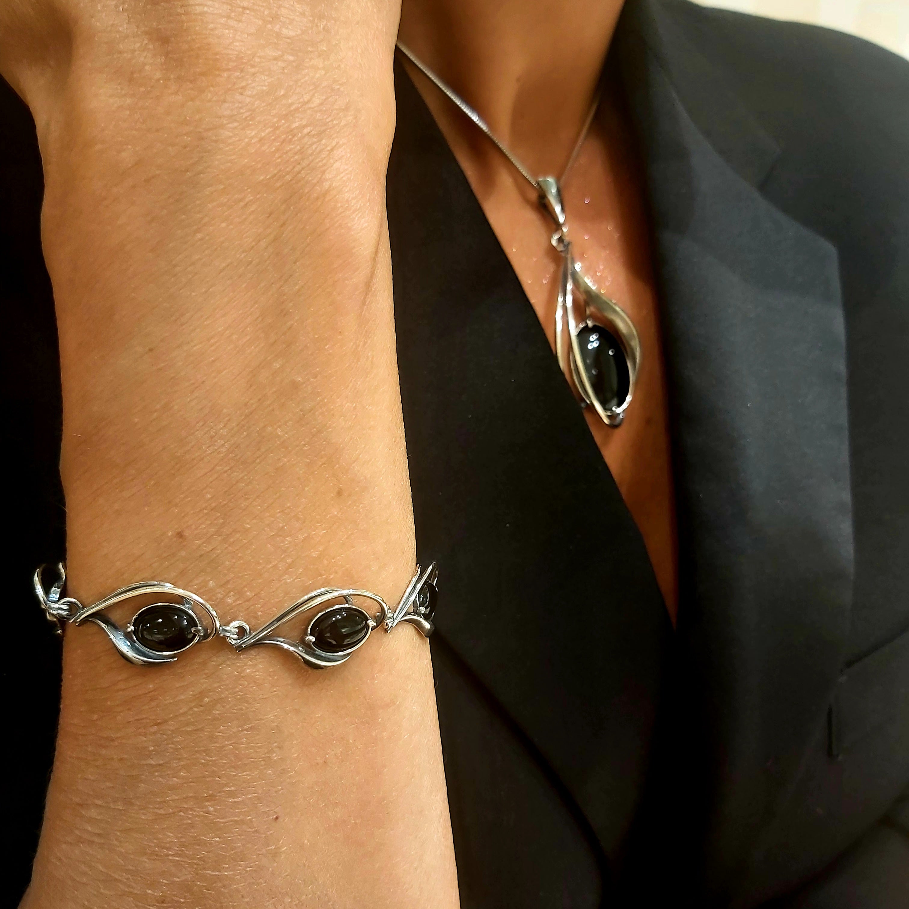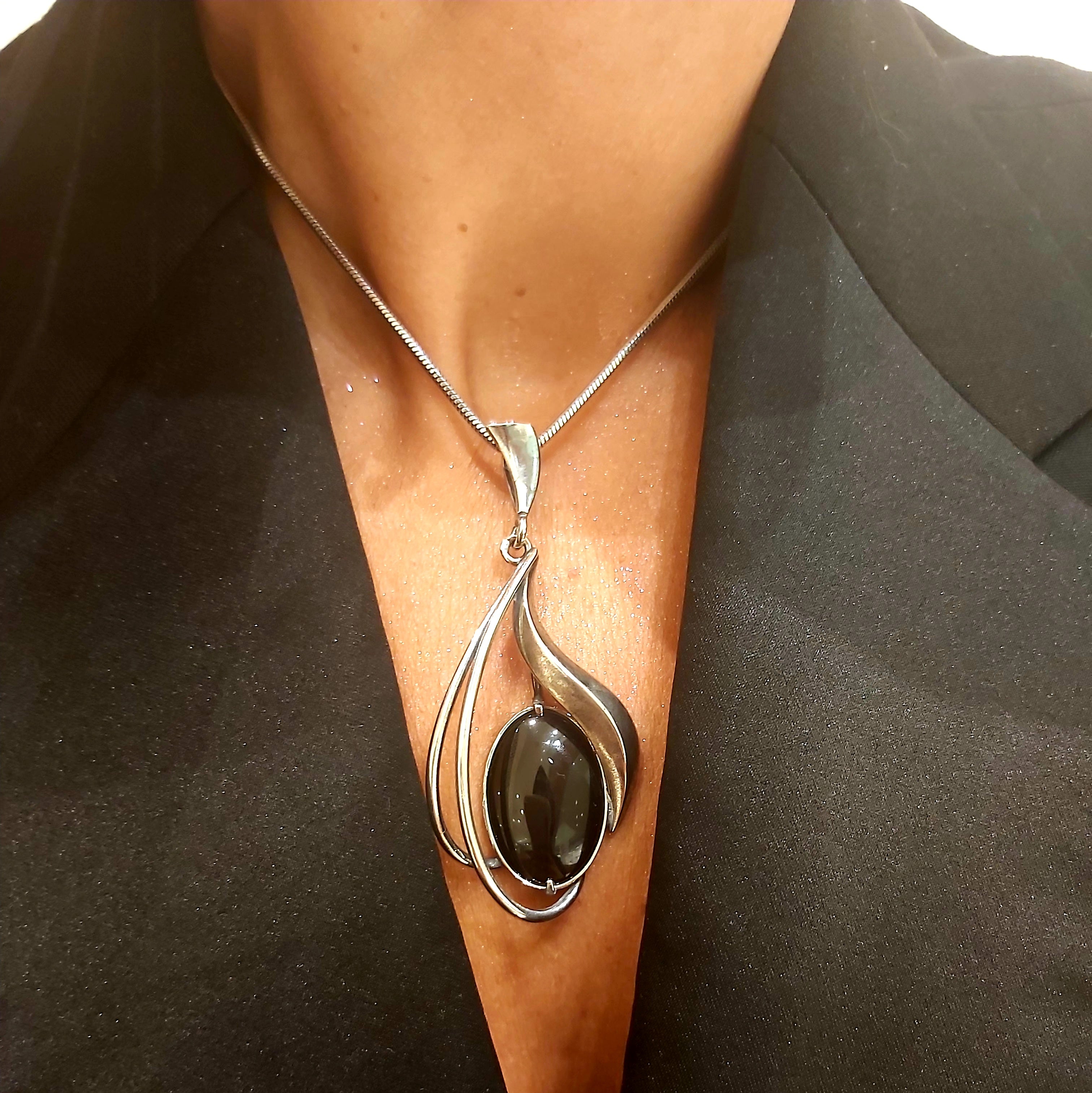 Zawieszka artystyczna z onyksem wykonana ze srebra próby 925.