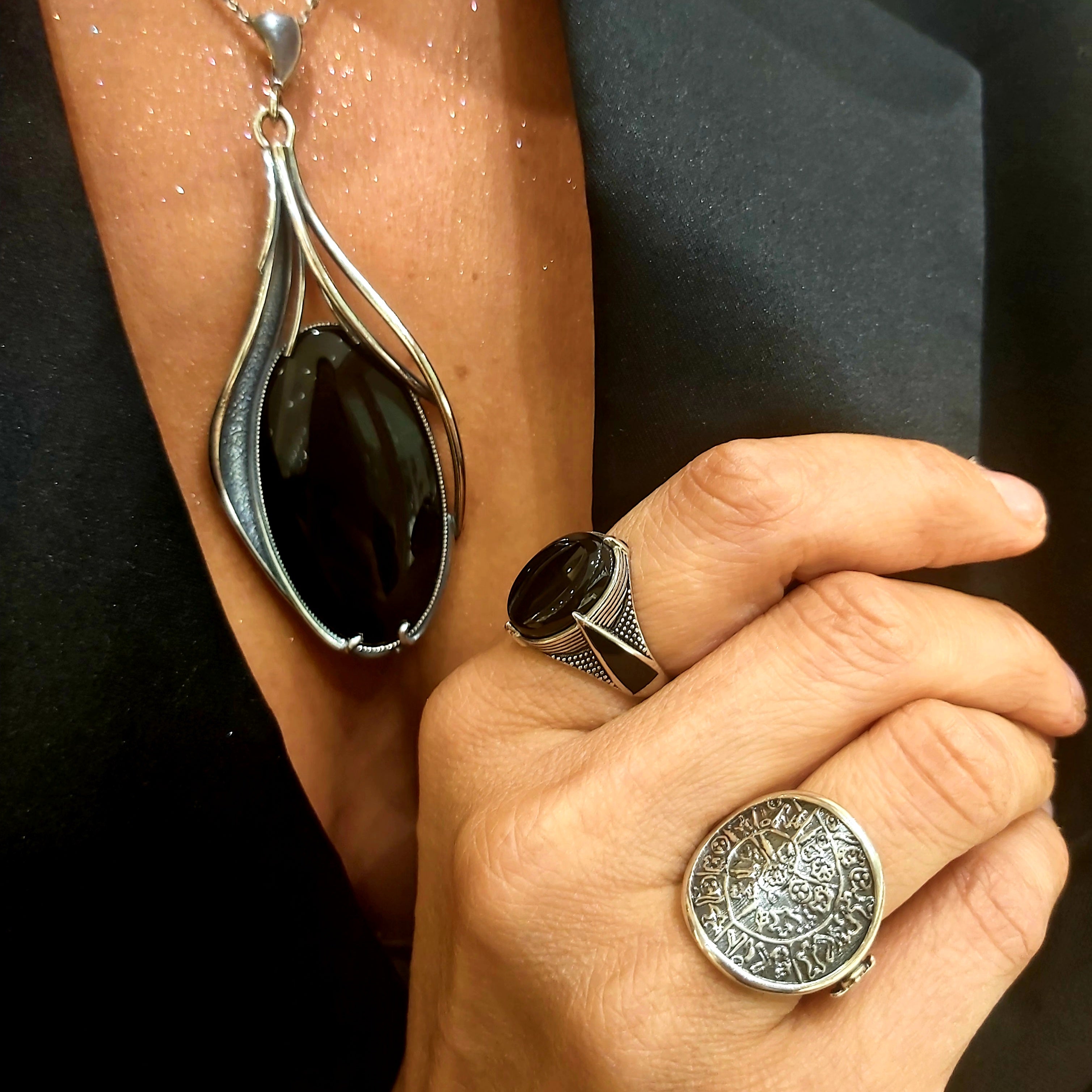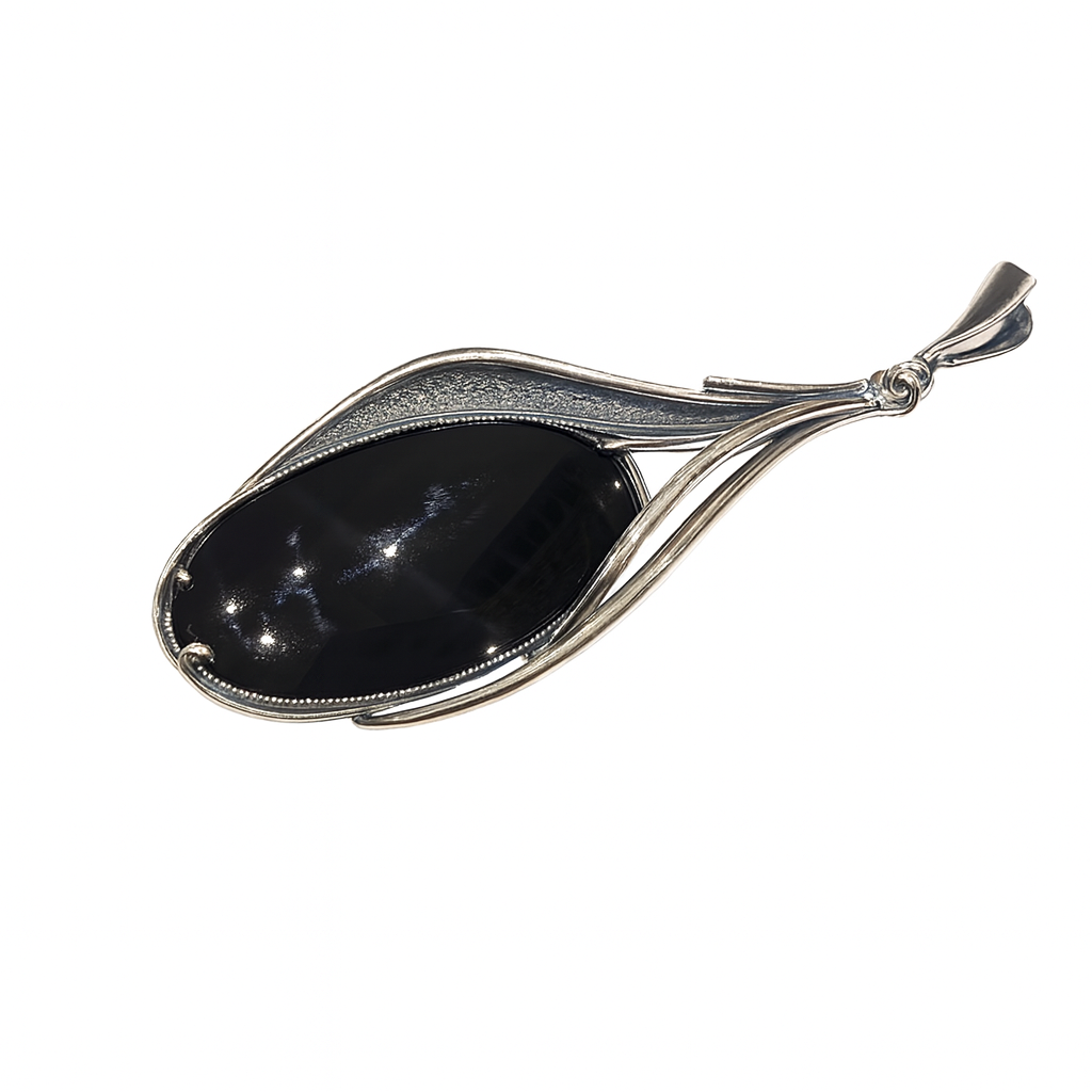 Zawieszka artystyczna z onyksem wykonana ze srebra próby 925.